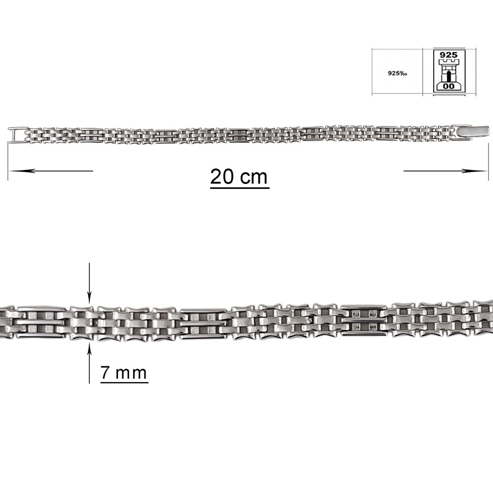 Avand o lungime de 20 cm si o latime de 6 mm, aceasta piesa se potriveste perfect pe incheietura mainii, oferind un confort deosebit pe durata purtarii. Greutatea de 15.9 grame asigura o prezenta notabila.