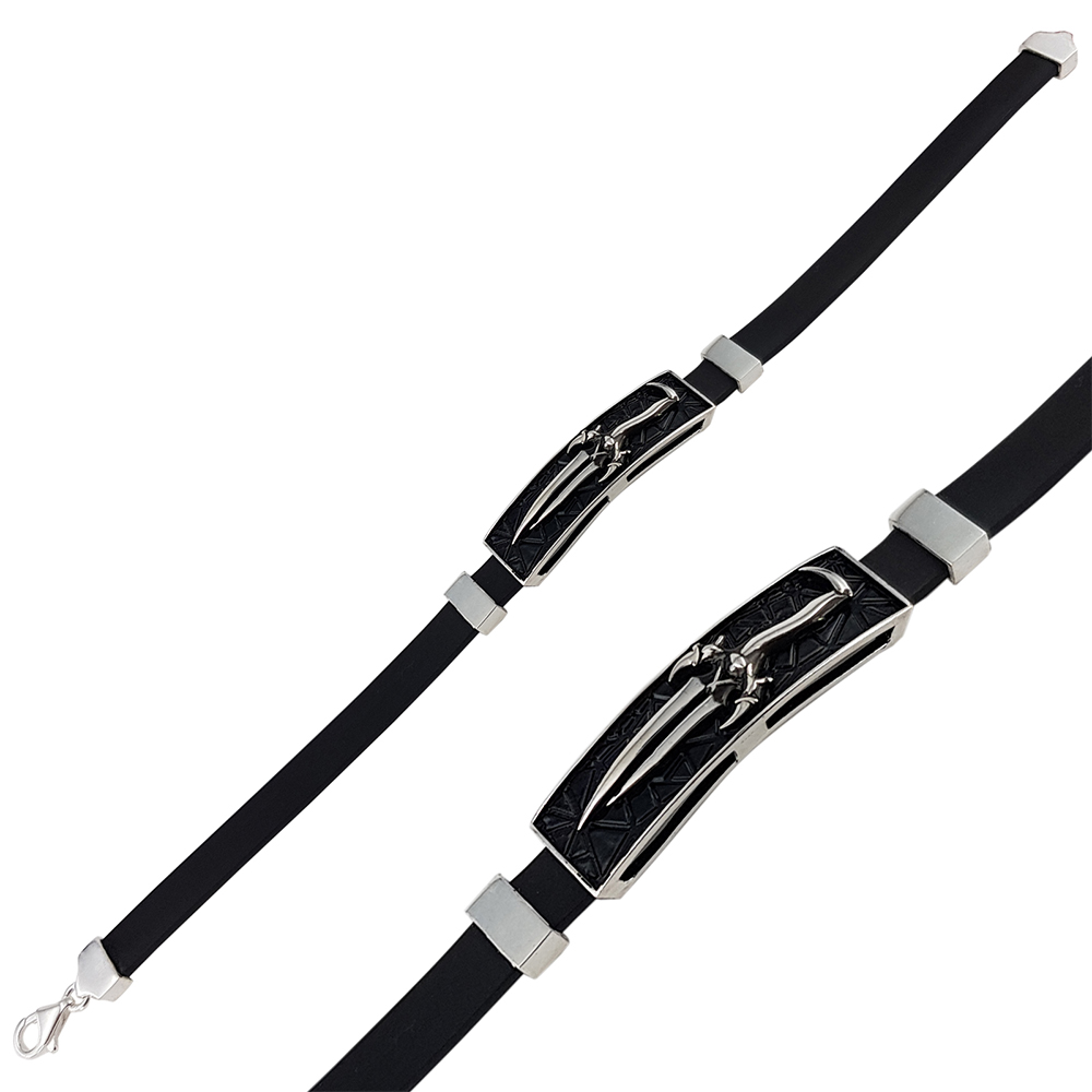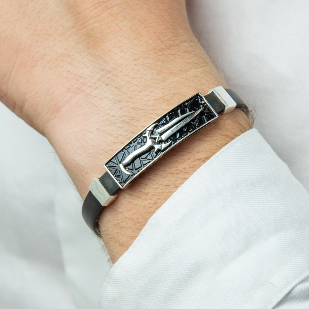 Experimentati rafinamentul si eleganta cu noua noastra bratara de argint 925 pentru barbati, o piesa distincta care imbina clasicul cu modernul. Aceasta bratara unica, combinand argintul 925 cu siliconul, este accentuata de o placuta din argint, finisata cu email negru, creand un contrast vizual impresionant si o rezistenta crescuta la uzura zilnica.