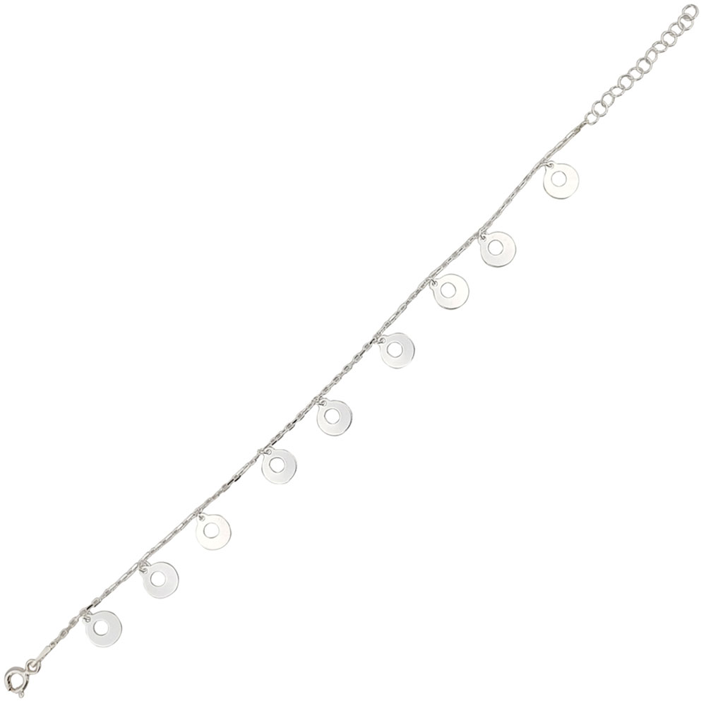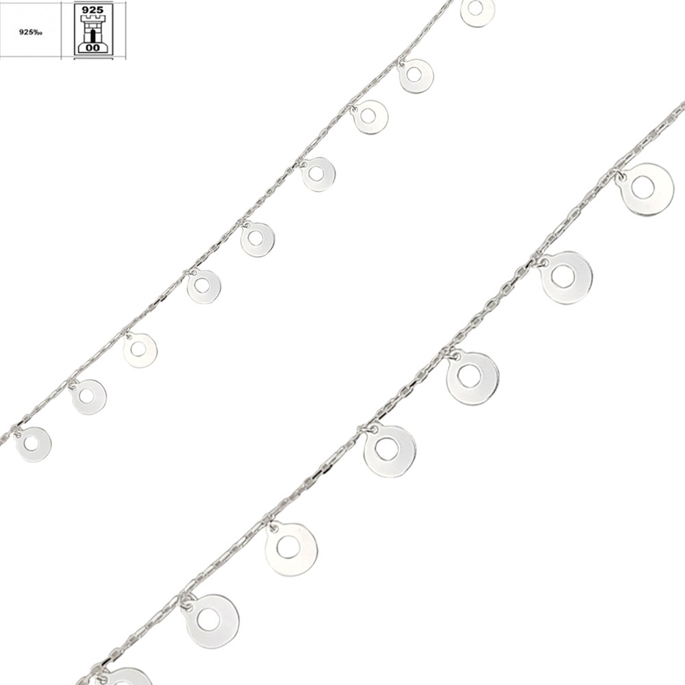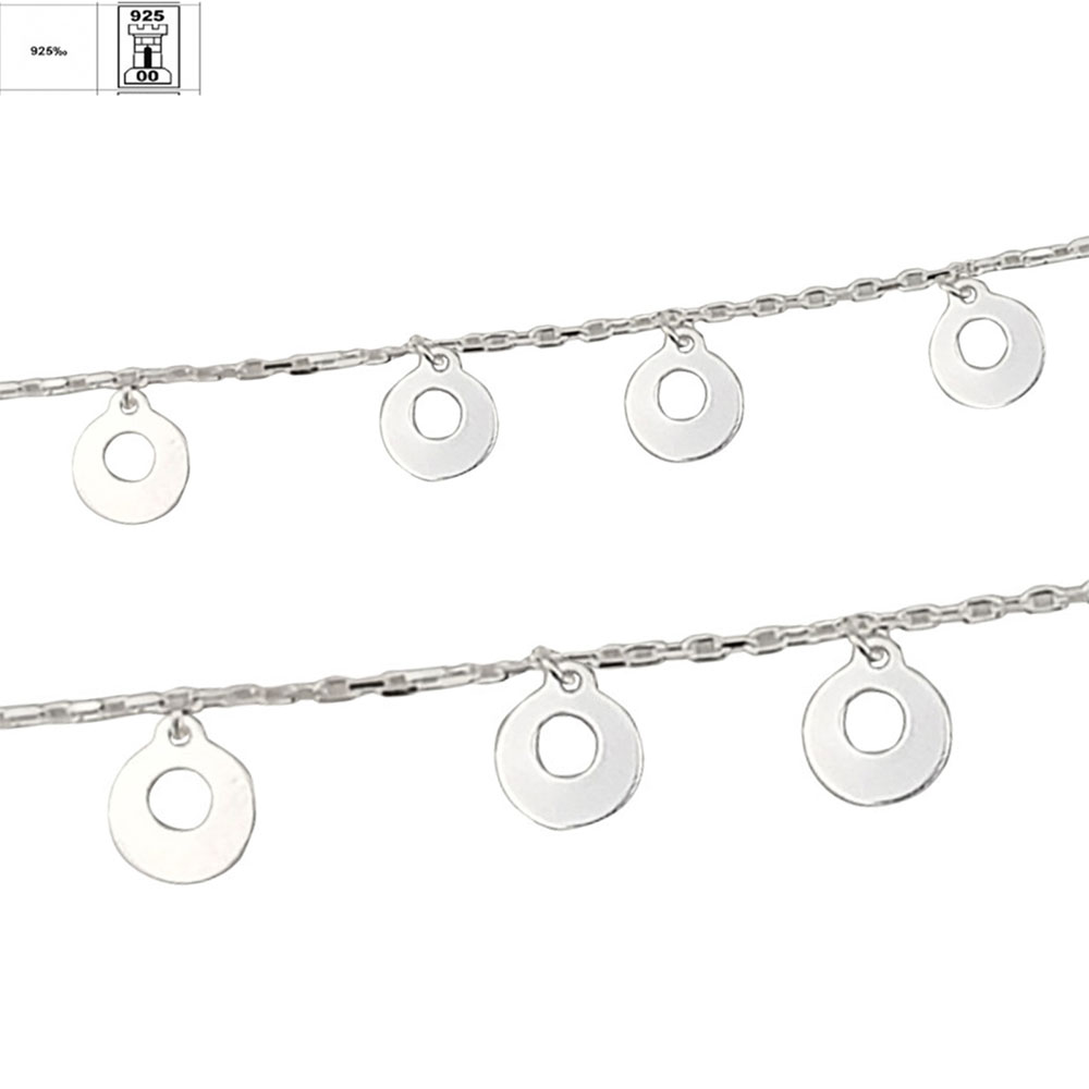 Simplitatea devine sofisticata cu bratara din argint cercuri Circles, o piesa rafinata, creata pentru femeile care apreciaza detaliile fine si designul modern. Realizata din argint 925 , bratara impresioneaza printr-un lant fin tip zale, decorat cu noua cercuri perfect rotunde, dispuse echidistant pentru un efect vizual echilibrat si fluid.