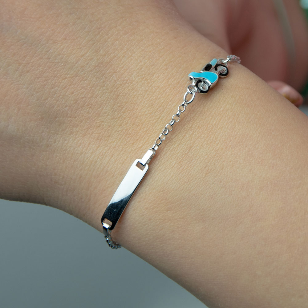 Explorati lumea bijuteriilor fine pentru cei mici cu Bratara de Copii din Argint 925, un accesoriu delicat si durabil, ideal pentru a fi oferit cadou. Aceasta piesa eleganta, caracterizata printr-un design modern si atractiv, este completata de o placuta ce poate fi personalizata prin gravura, facand-o unicat pentru copilul dumneavoastra.