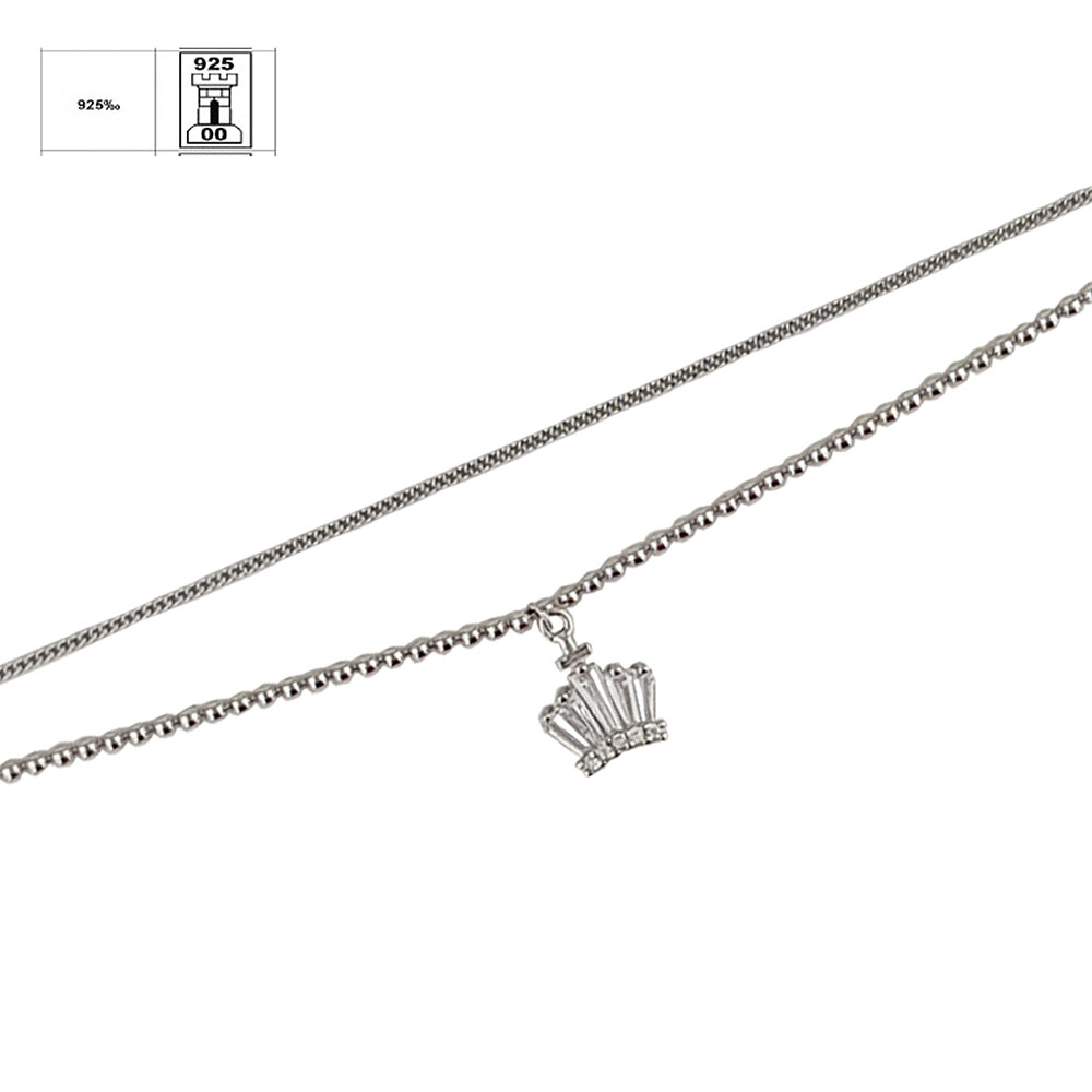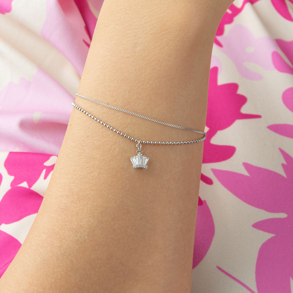 Bratara din argint este compusa din doua tipuri de lanturi, zale fine si bilute delicate, accentuate de o coroana eleganta, incrustata cu zirconii stralucitoare. Lungimea ajustabila de la 17 la 20 cm asigura o potrivire perfecta pentru orice incheietura, iar greutatea de doar 2.61 grame o face extrem de confortabila, chiar si pentru purtare indelungata.