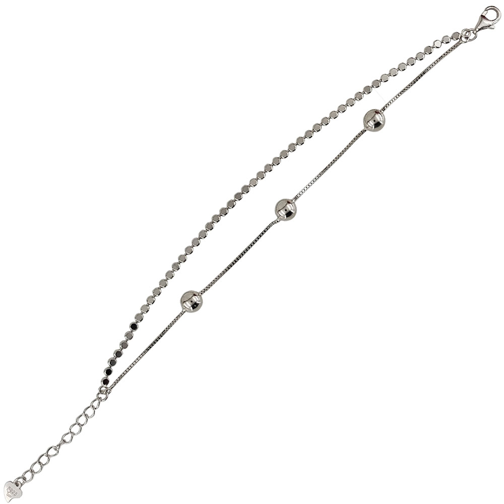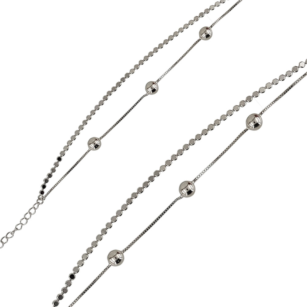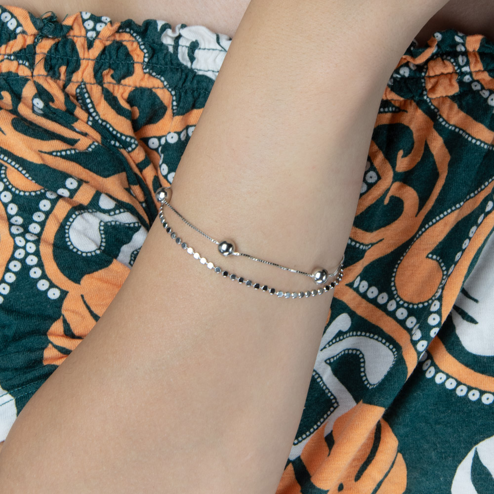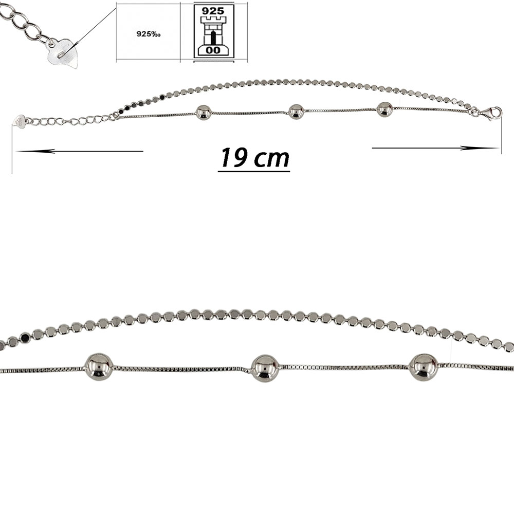 Bratara dubla din argint 925 pentru dama - o bijuterie ce combina eleganta simpla cu un design modern si versatil. Aceasta piesa rafinata, caracterizata prin intercalarea delicata a cercurilor si sferelor lucioase, este conceputa sa adauge o nota de stralucire tinutei tale, fiind ideala atat pentru uz zilnic, cat si pentru ocazii speciale.