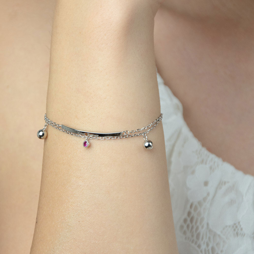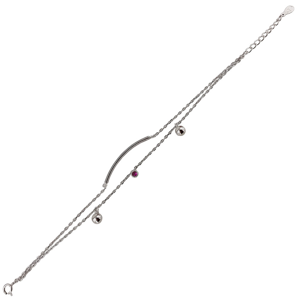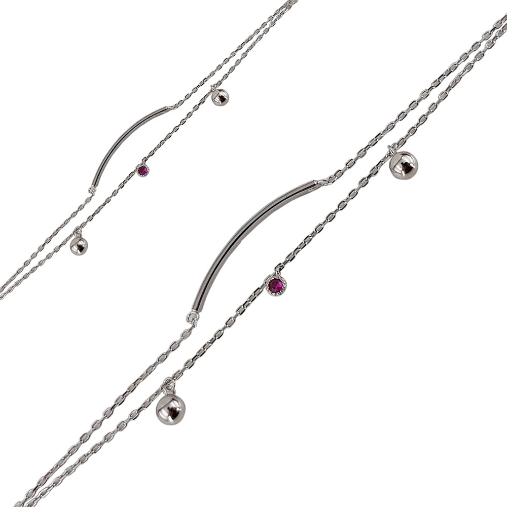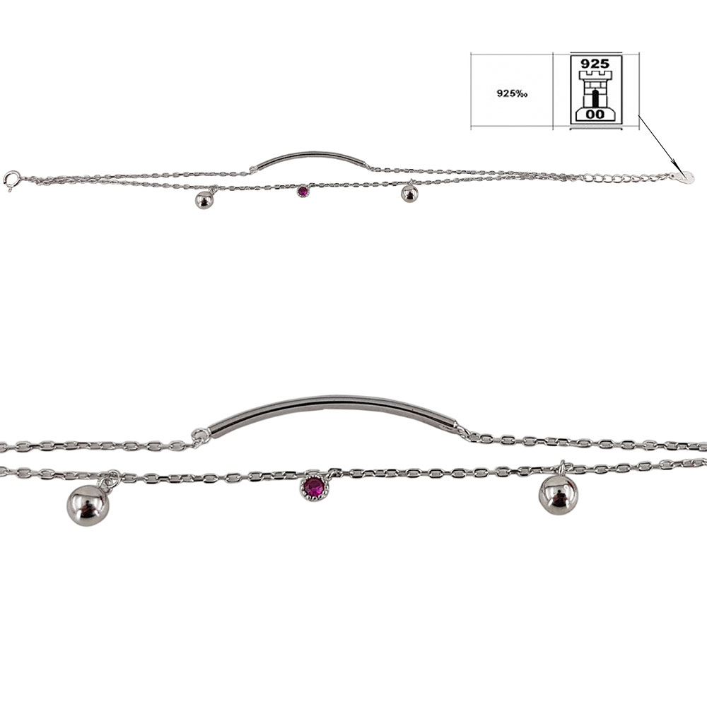 Descoperiti frumusetea si rafinamentul cu Bratara Nihan din Argint 925, un accesoriu de nelipsit din colectia oricarei doamne. Aceasta bijuterie delicata este decorata cu un zirconiu rotund liber fucsia, oferind o nota de culoare si stralucire. Bratara dubla are o lungime ajustabila de 16.5-19.5 cm, fiind potrivita pentru diverse marimi de incheietura.