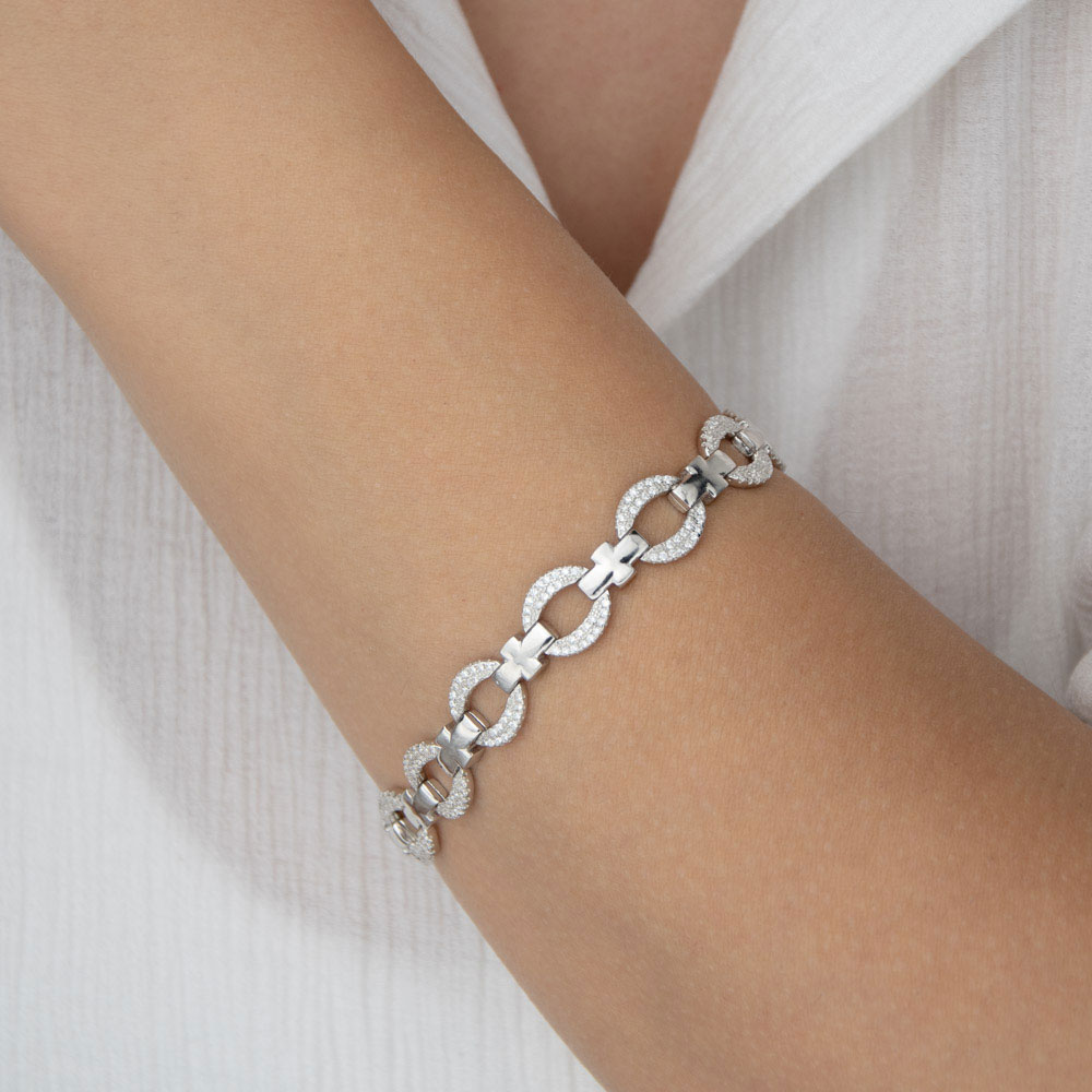 Descoperiti frumusetea si eleganta bratarii THIA Jewelry, un accesoriu de dama realizat din argint 925 de inalta calitate. Aceasta bratara deosebita este decorata cu zirconii albe, adaugand o nota de stralucire oricarei tinute. Cu o lungime de 190 mm si o latime de 10 mm, acest accesoriu este atat practic, cat si sofisticat.