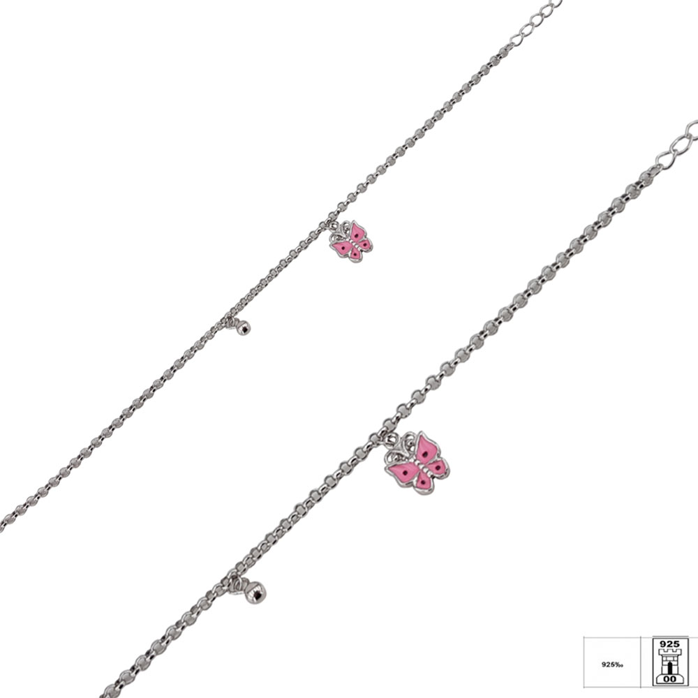 Explorati lumea elegantei discrete cu bratara noastra din argint 925, decorata cu un fluturas fermecator in nuante de roz. Acest model este conceput special pentru a aduce un strop de culoare si sofisticare garderobei oricarei doamne.