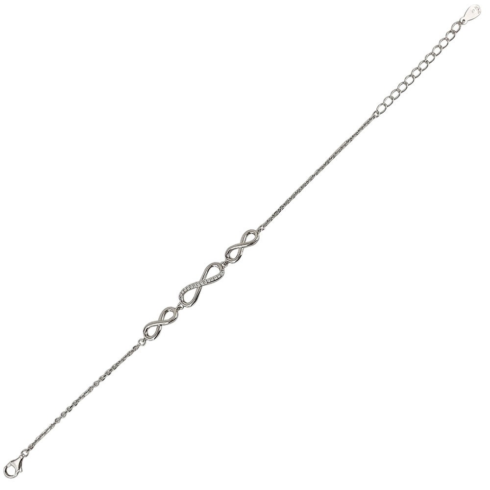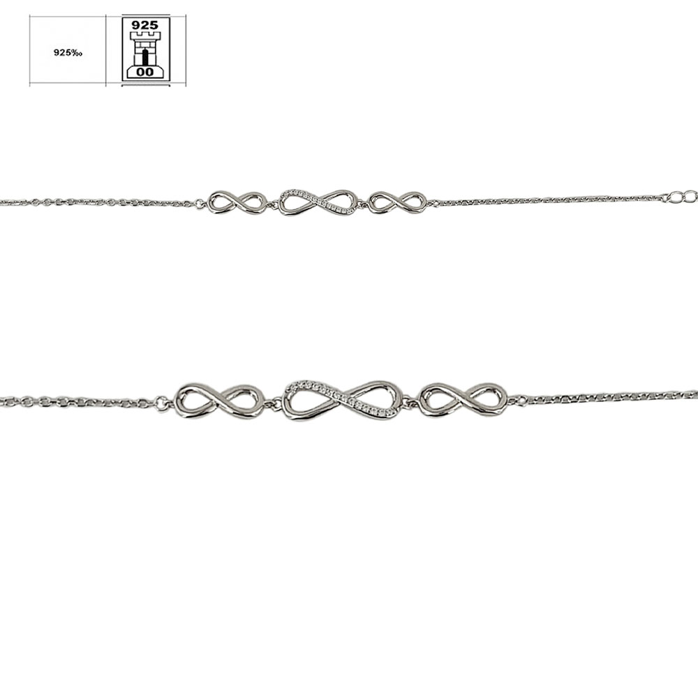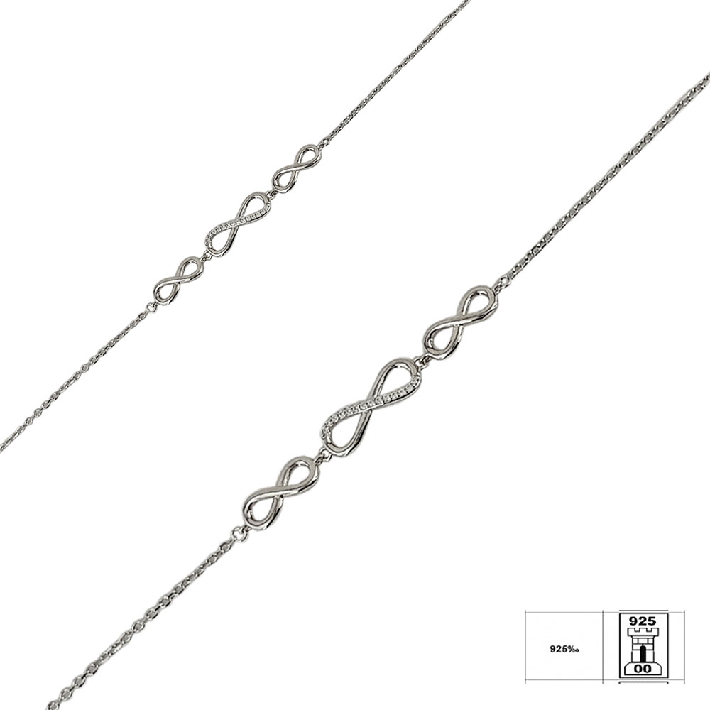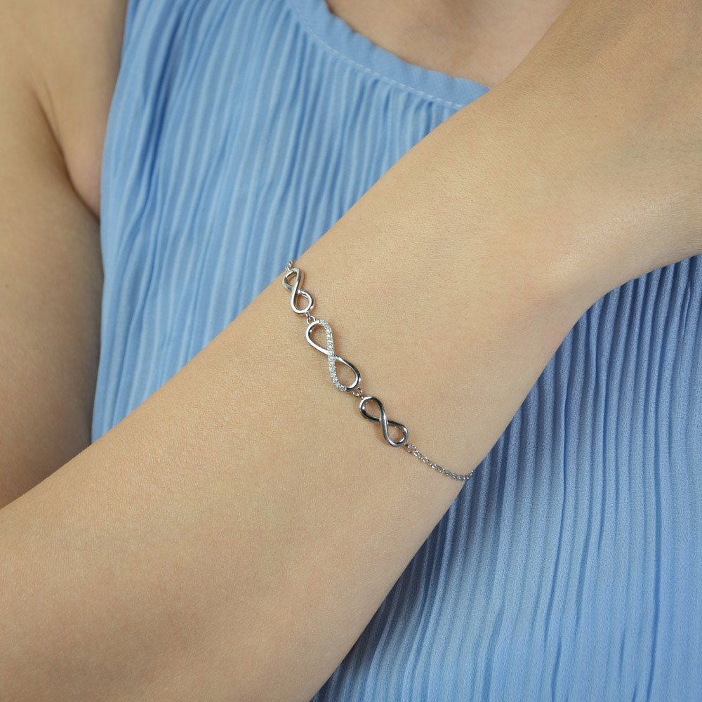 Explorati lumea elegantei discrete cu Bratara Argint Infinit Alaina, un accesoriu esential pentru orice garderoba feminina. Realizata din argint 925, aceasta bijuterie rafinata aduce un plus de stil, incorporand un design sofisticat cu simbolul infinit, fiecare bucla fiind meticulos decorata cu zirconii albe stralucitoare.