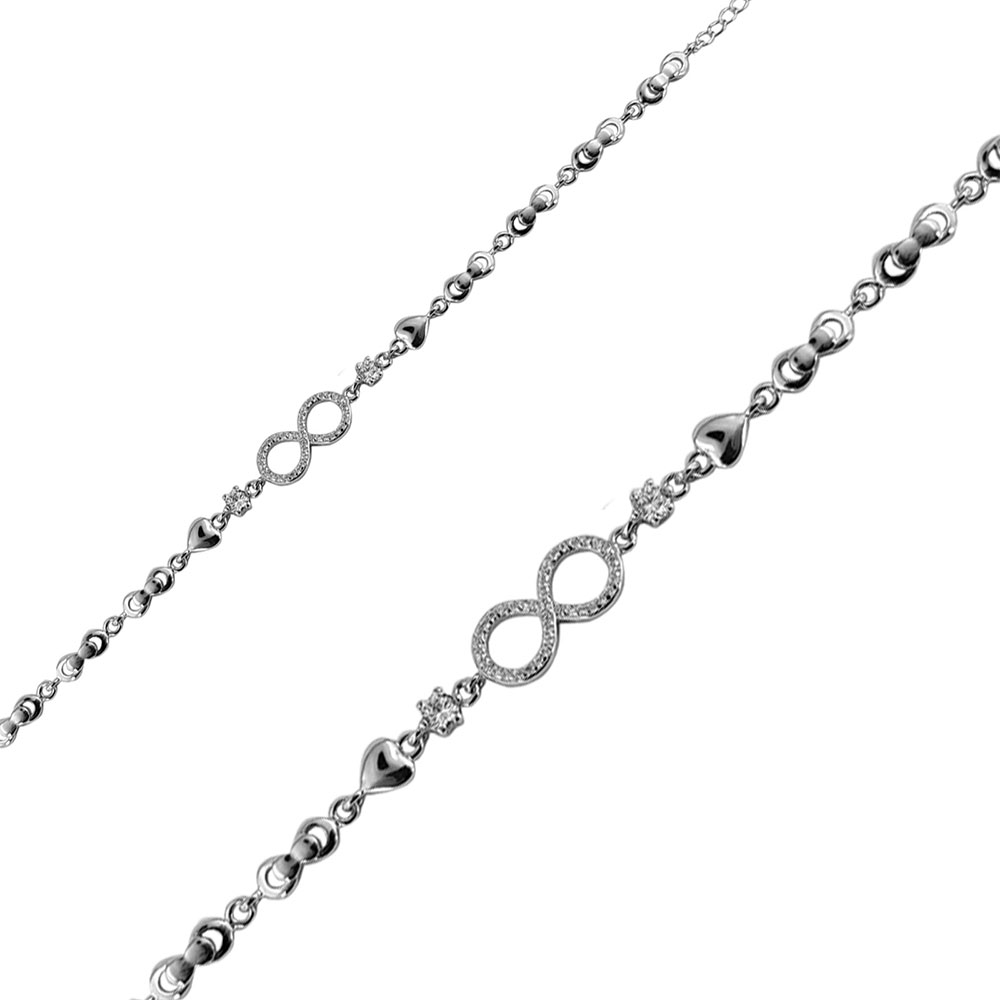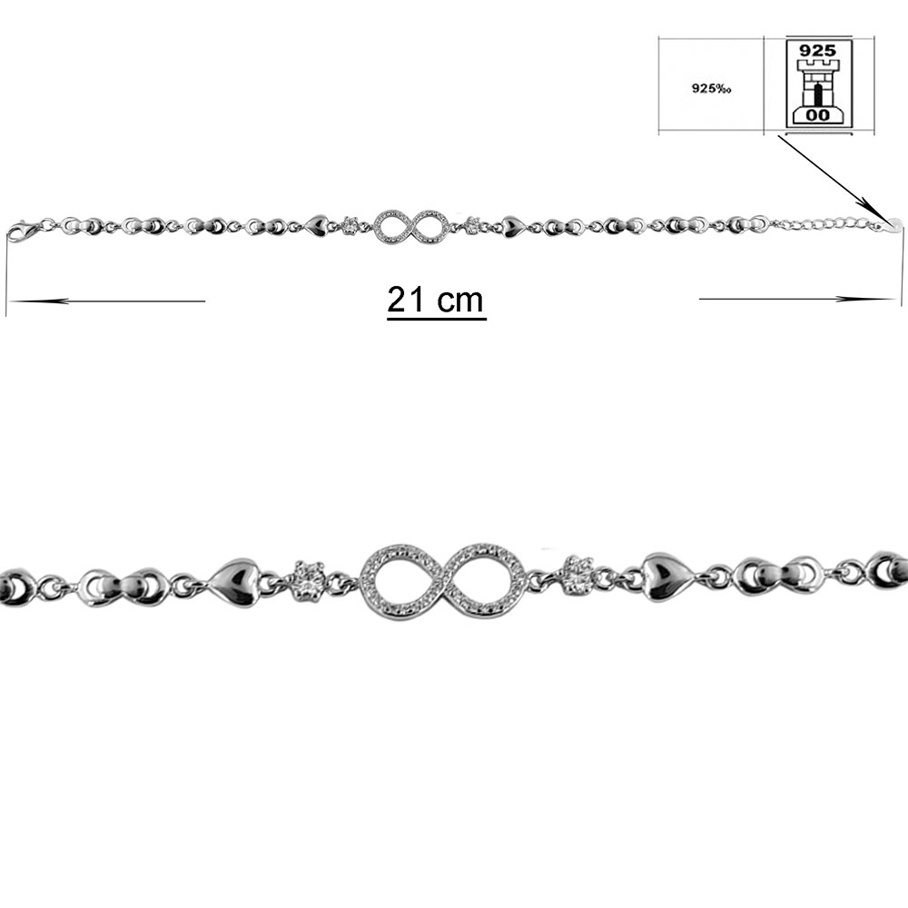 Experimenteaza rafinamentul si stralucirea cu noua noastra bratara Grace din argint 925, decorata cu zirconii albe. Acest accesoriu deosebit poarta simbolul infinitului, accentuat de doua inimi elegante, oferind o nota de romantism si finete oricarui outfit. Bratara Grace este perfecta pentru orice ocazie, fiind un cadou ideal pentru cineva drag sau o adaugare pretioasa la propria colectie de bijuterii.