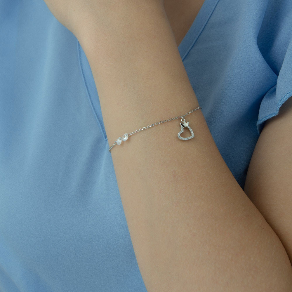 Designul sofisticat incorporeaza o inima stilizata, frumos decorata cu zirconii stralucitoare, si o coronita ce adauga un strop de regalitate tinutei tale. Lungimea bratarii este ajustabila intre 17 si 21 cm, asigurandu-se ca se potriveste perfect pe orice incheietura.