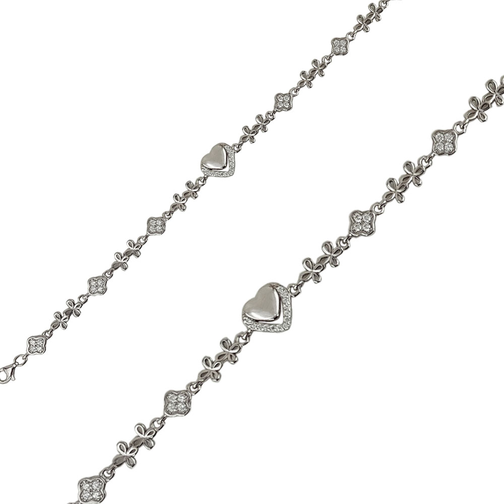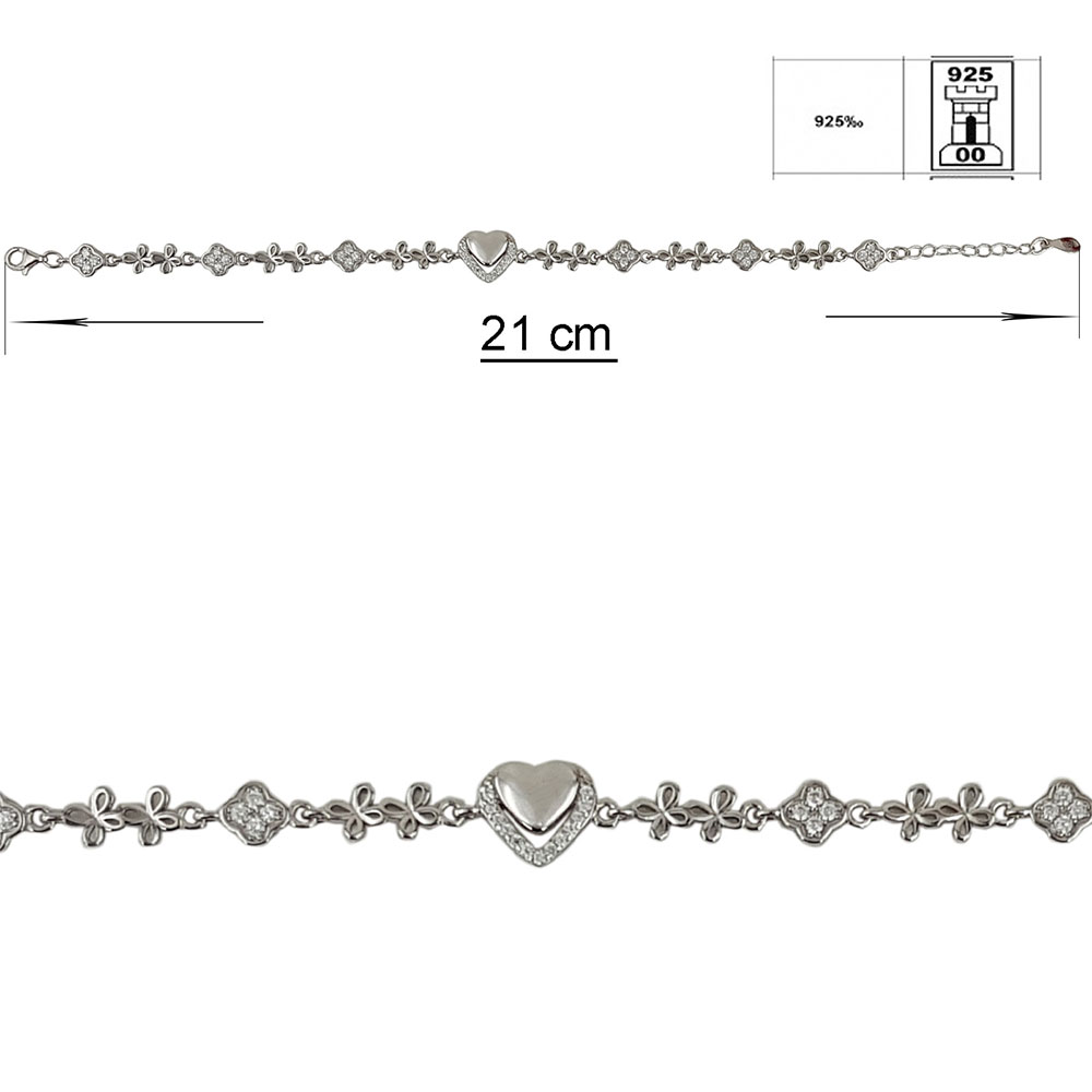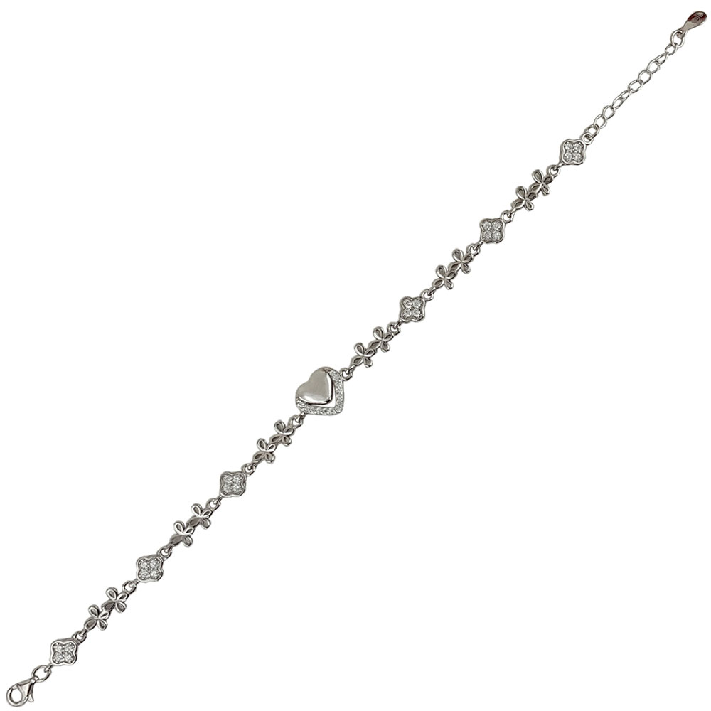 Lasati-va cuceriti de delicatetea si stralucirea Bratarii din Argint 925 modelul Kaylee, un accesoriu ce imbina rafinamentul cu stilul contemporan. Acesta este accesorizat cu o inima plina si flori cu zirconii albe, perfecte pentru a adauga o nota de eleganta tinutei dumneavoastra.