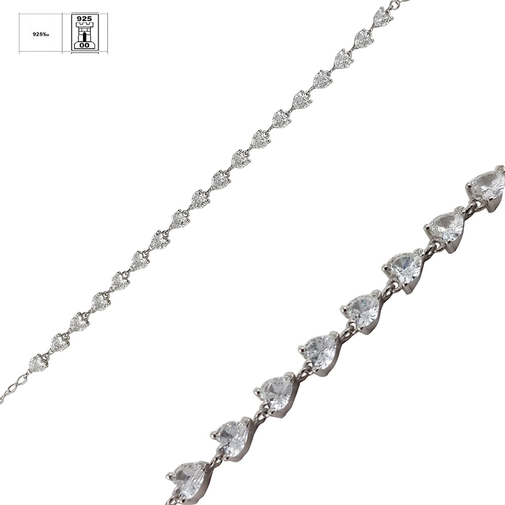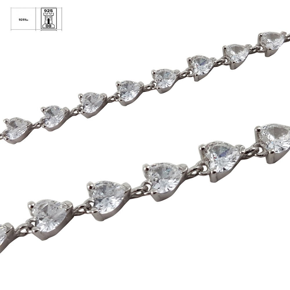Designul romantic este accentuat de inimioarele din zirconii albe, care aduc un plus de stralucire si rafinament. Fiecare inimioara este finisata meticulos pentru a reflecta lumina si a capta privirile.