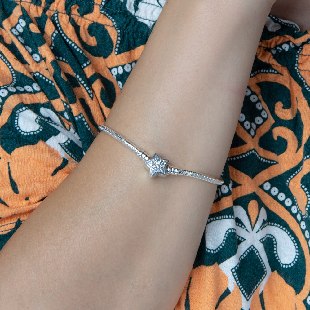 Adauga un strop de eleganta garderobei tale cu aceasta bratara din argint 925, special conceputa pentru dama. Designul unic cu inchizatoare in forma de stea, decorata cu zirconii albe stralucitoare, aduce un plus de rafinament oricarei tinute.