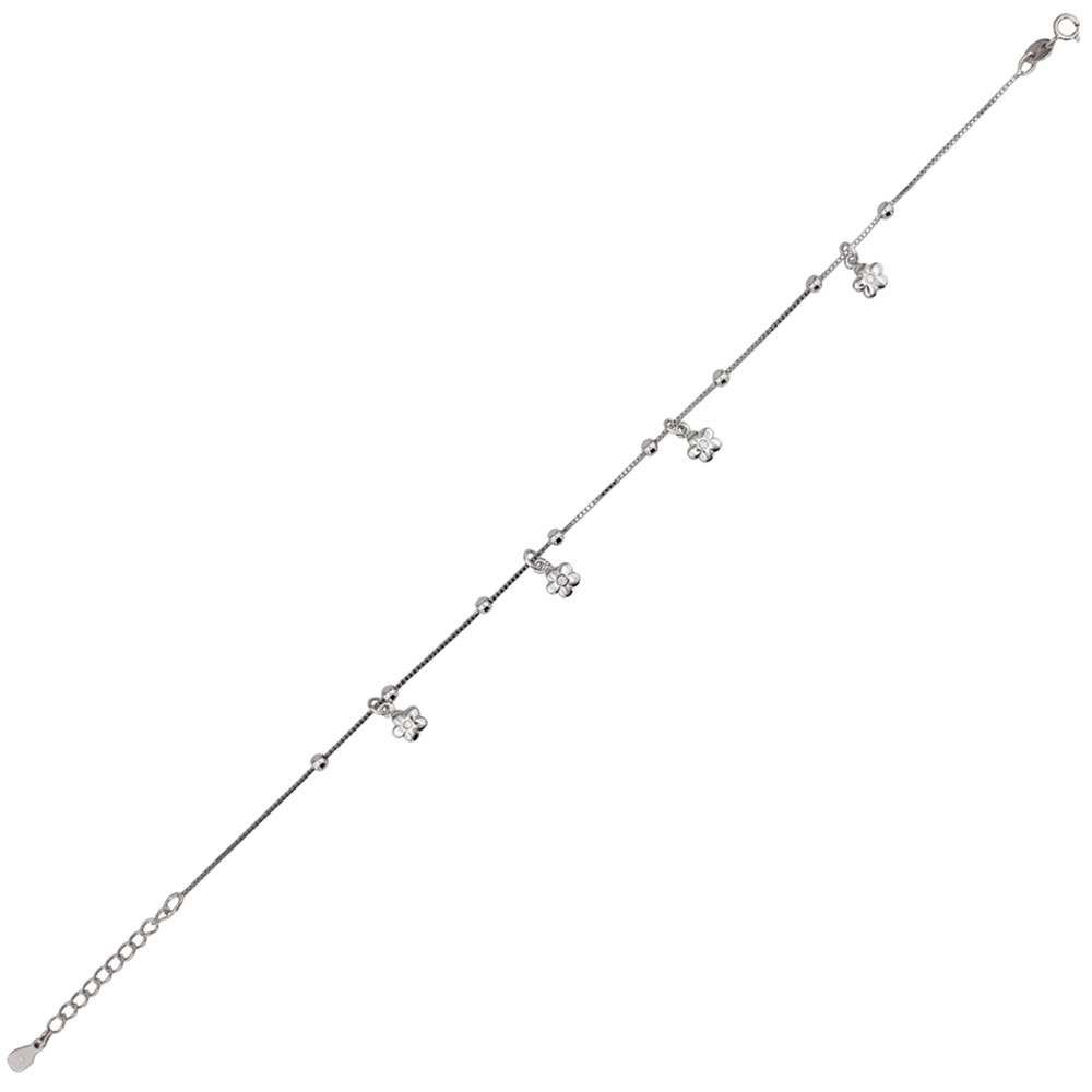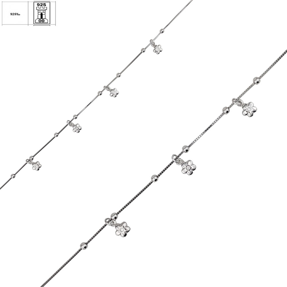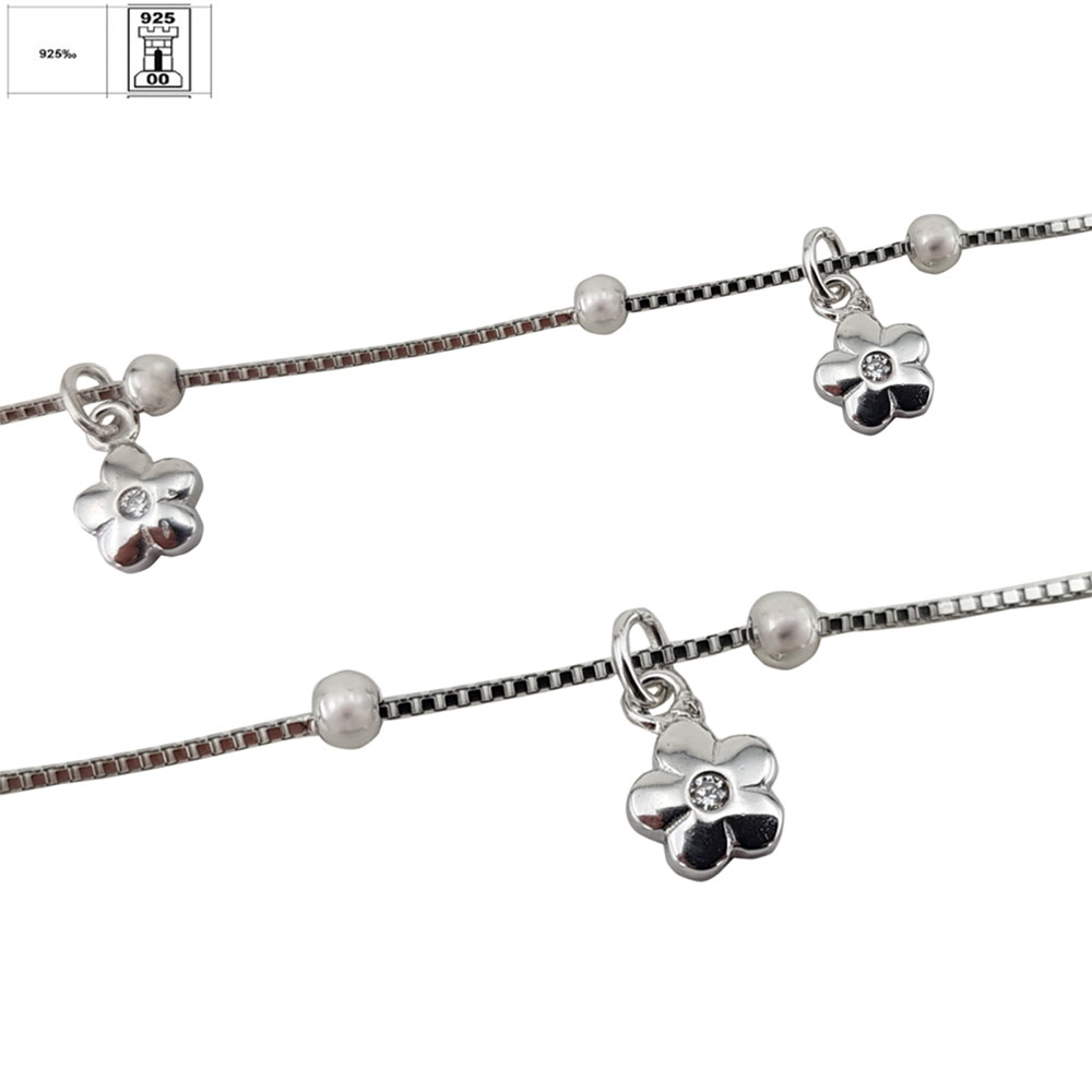Adauga un strop de rafinament tinutei tale estivale cu bratara de picior din argint 925 Flores, un accesoriu care imbina eleganta clasica cu delicatetea detaliilor florale. Aceasta bijuterie este realizata din argint 925 de inalta calitate, conform cu legislatia in vigoare privind metalele pretioase, si este decorata cu 4 floricele fine incrustate cu zirconii albe stralucitoare, completate de 8 bilute decorative care fixeaza si echilibreaza armonios designul.