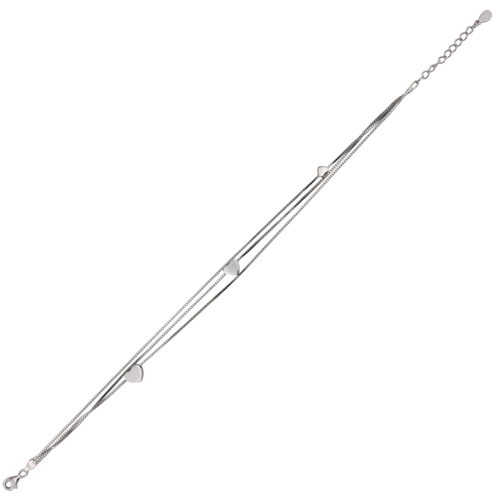 Adauga o nota subtila de rafinament tinutelor tale cu bratara de picior din argint 925 model Inima Trio. Aceasta piesa delicata este compusa din trei lanturi fine, fiecare decorat cu o inimioara fixa, creand un efect vizual elegant si feminin.