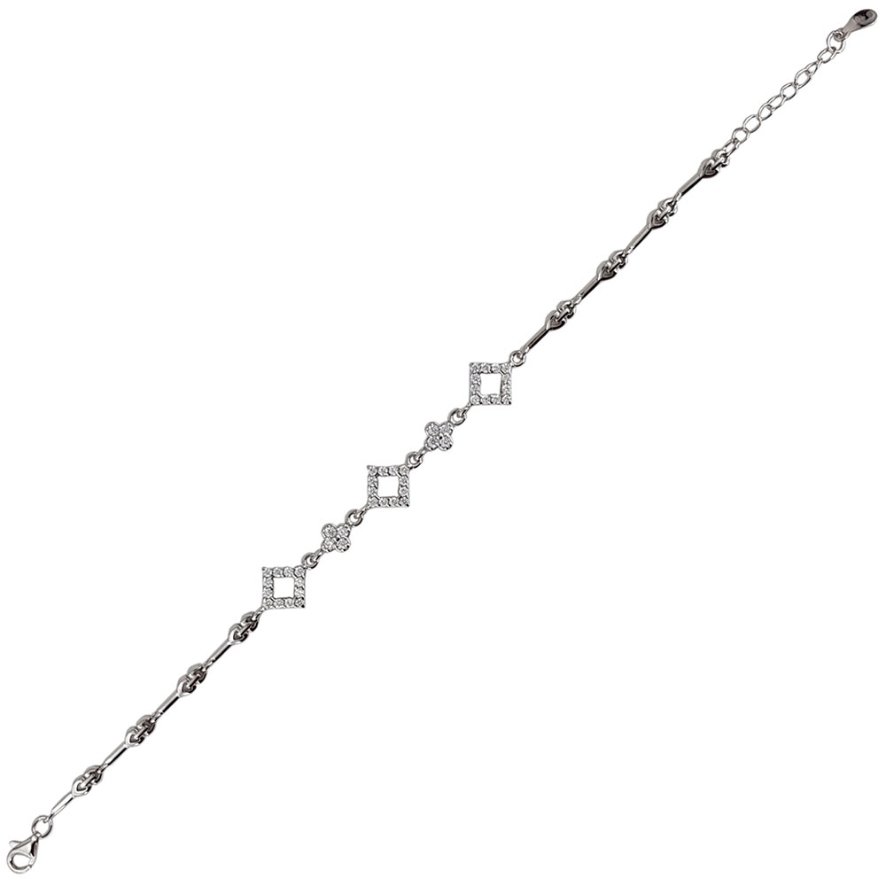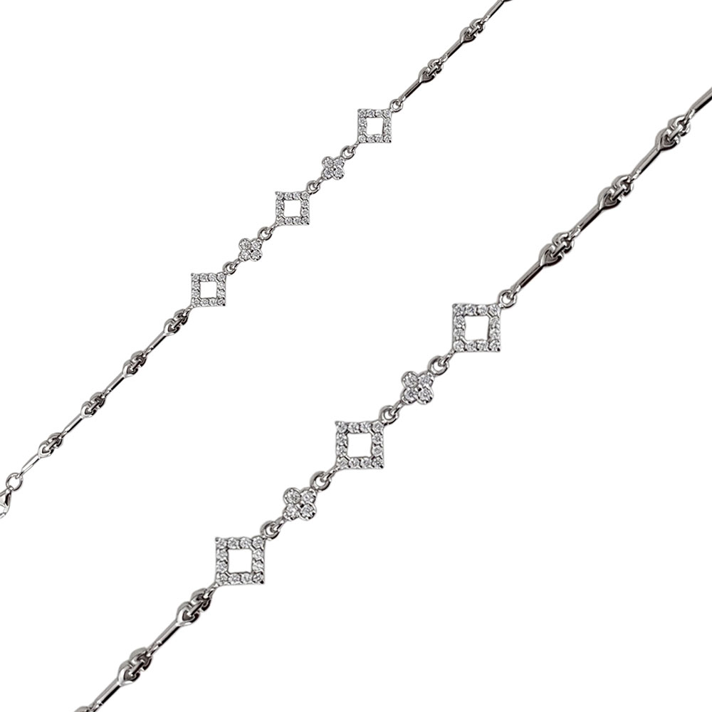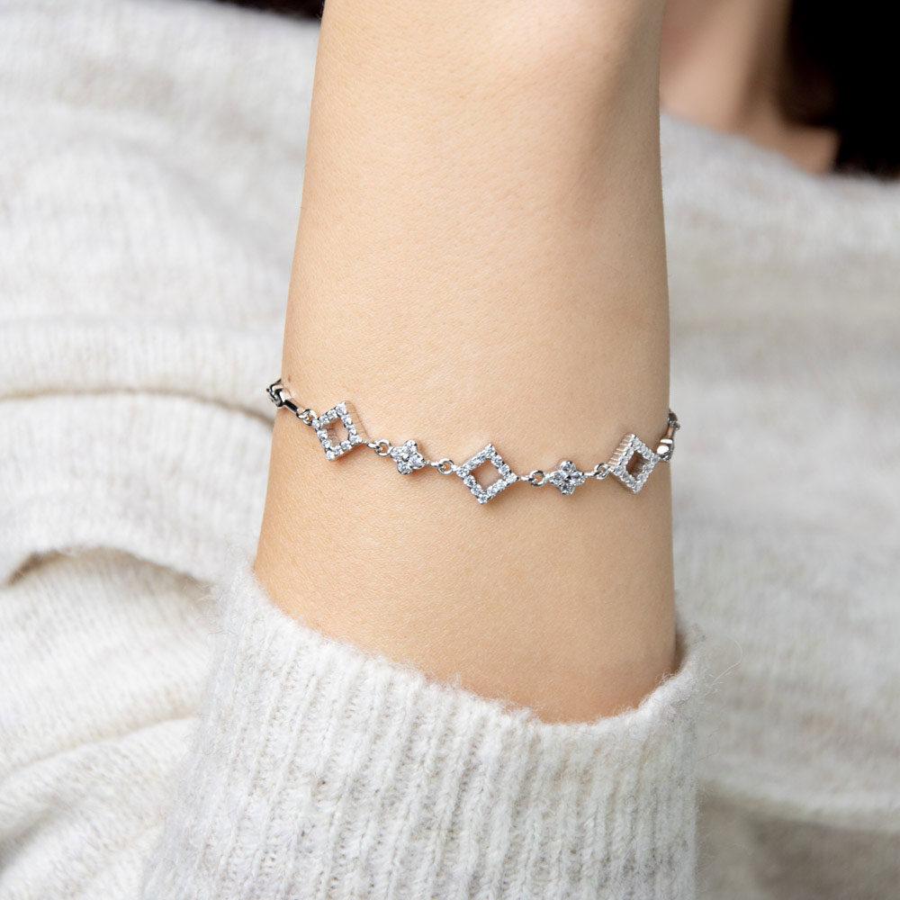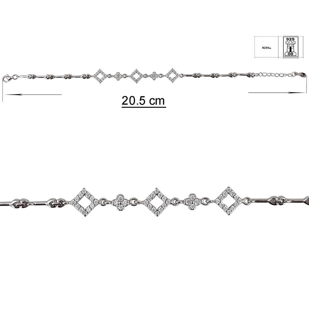 Explorati eleganta rafinata cu Bratara Amaya din Argint 925, o creatie de exceptie pentru garderoba oricarei doamne. Fiecare segment al acestei bratari este meticulos lucrat, combinand forme geometrice de romburi cu delicate flori, toate incrustate cu zirconii albe ce reflecta lumina si adauga un plus de stralucire.