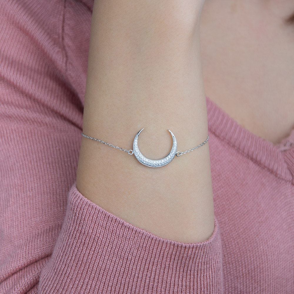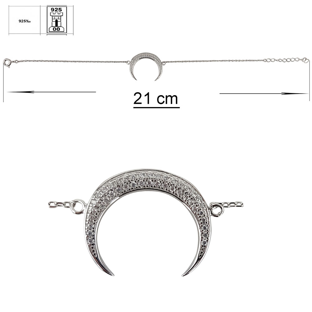 Designul cu semiluna adauga o nota de mister si feminitate, facand din aceasta bratara alegerea perfecta pentru orice ocazie, fie ca este vorba de o zi la birou sau o seara speciala. Dimensiunile bratarii sunt generoase, avand o lungime de 200 mm cu posibilitatea de ajustare prin prelungirea din zale de 3 cm, astfel incat sa se potriveasca perfect pe orice incheietura.