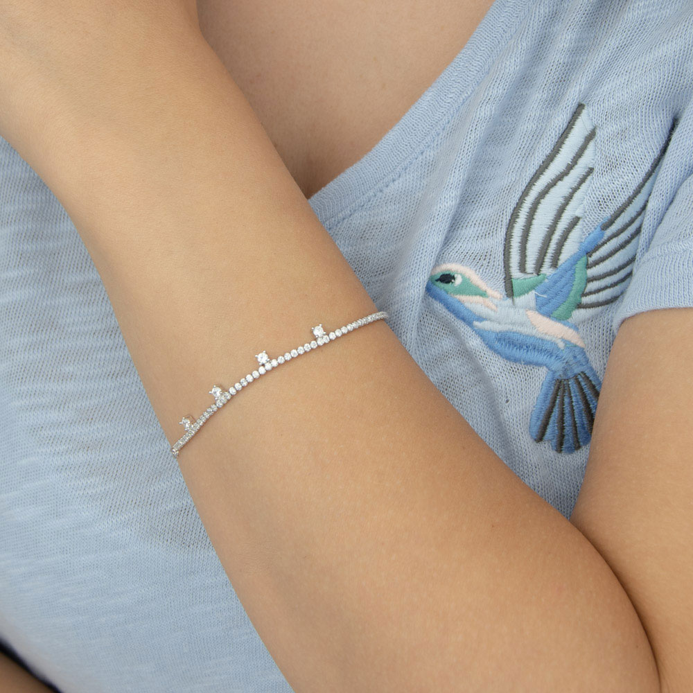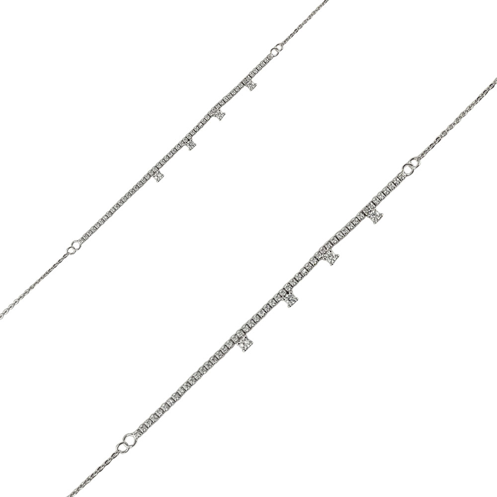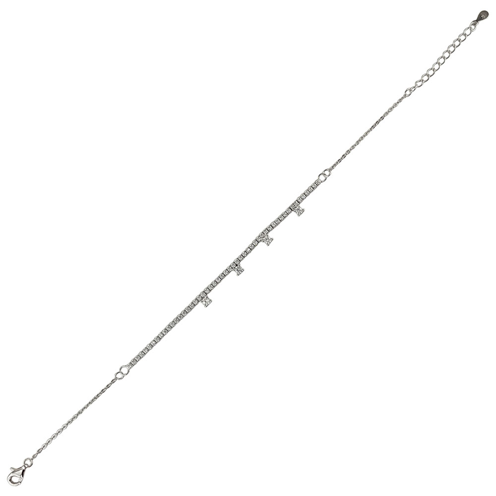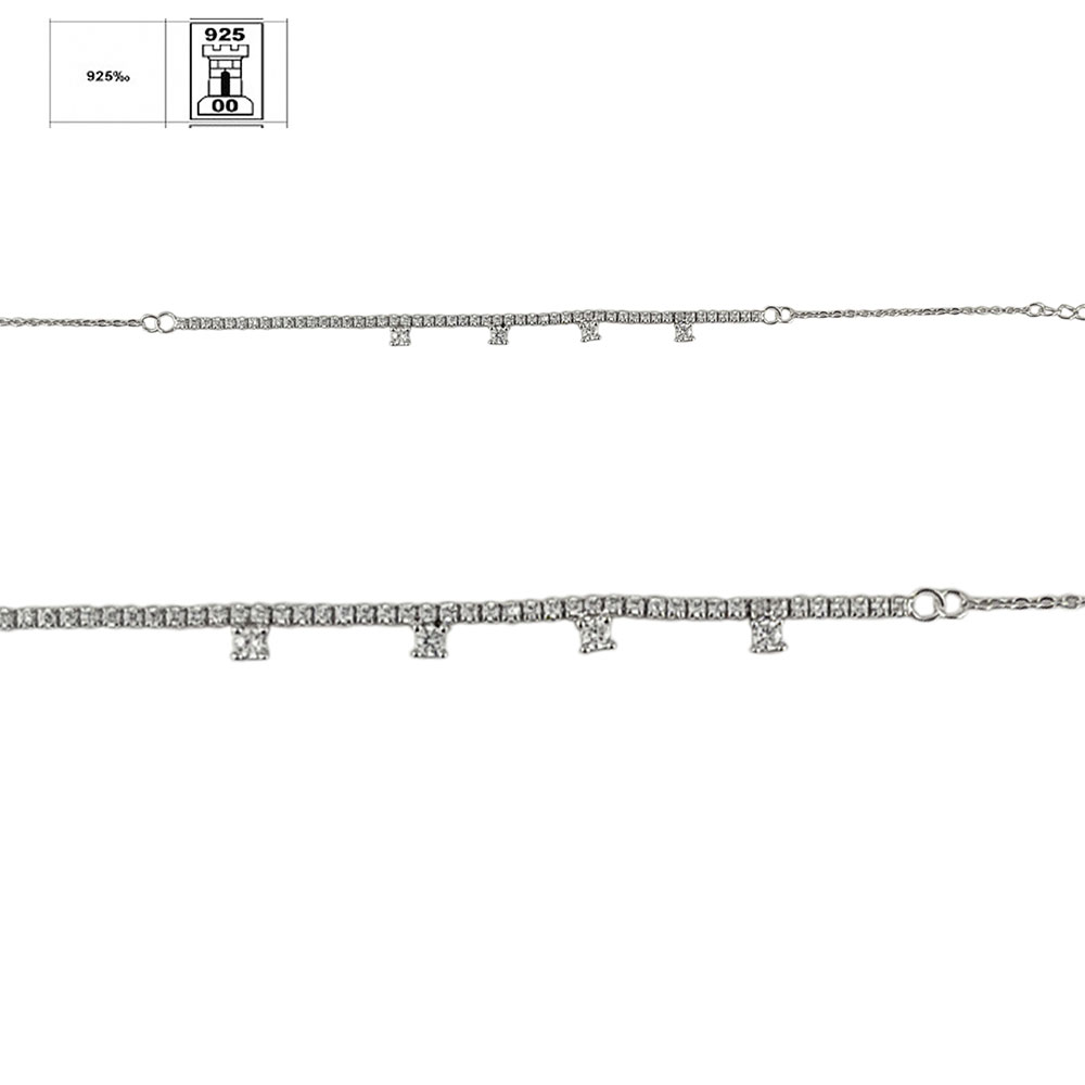 Detaliile fac diferenta: patru zirconii patrate de dimensiuni mai mari alternand cu multiple zirconii mici insirate pe un lant subtire de argint. Lungimea totala a bratarii este de 18 cm, extensibila pana la 22 cm, permitand ajustarea perfecta pentru orice incheietura.