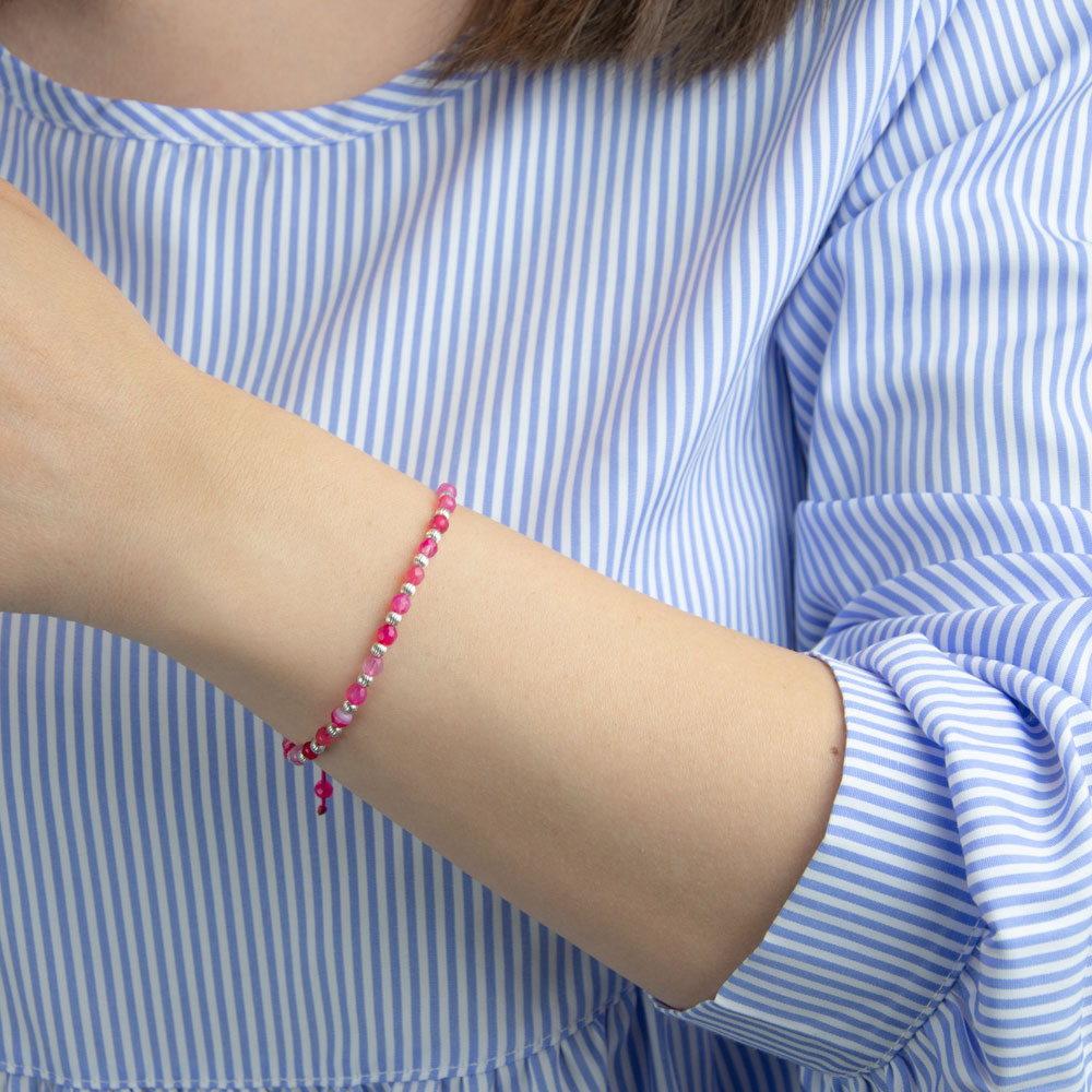 Fiecare bratara este creata cu argint 925, garantand nu doar frumusete, ci si calitatea inalta conform legislatiei in vigoare. Pietrele de agat roz adauga o nota de culoare si sunt cunoscute pentru efectele lor protectoare si vindecatoare, facand din aceasta bratara nu doar un accesoriu, ci si un talisman personal.