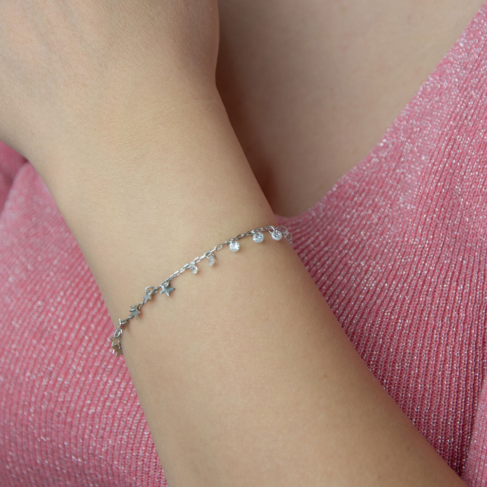 Adauga o nota de stralucire oricarei tinute cu Bratara din Argint 925 cu Stelute si Zirconii Balance de la Rankine. Aceasta piesa eleganta combina simplitatea stelutelor din argint cu stralucirea discreta a zirconiilor, creand un accesoriu versatil, perfect pentru orice ocazie.