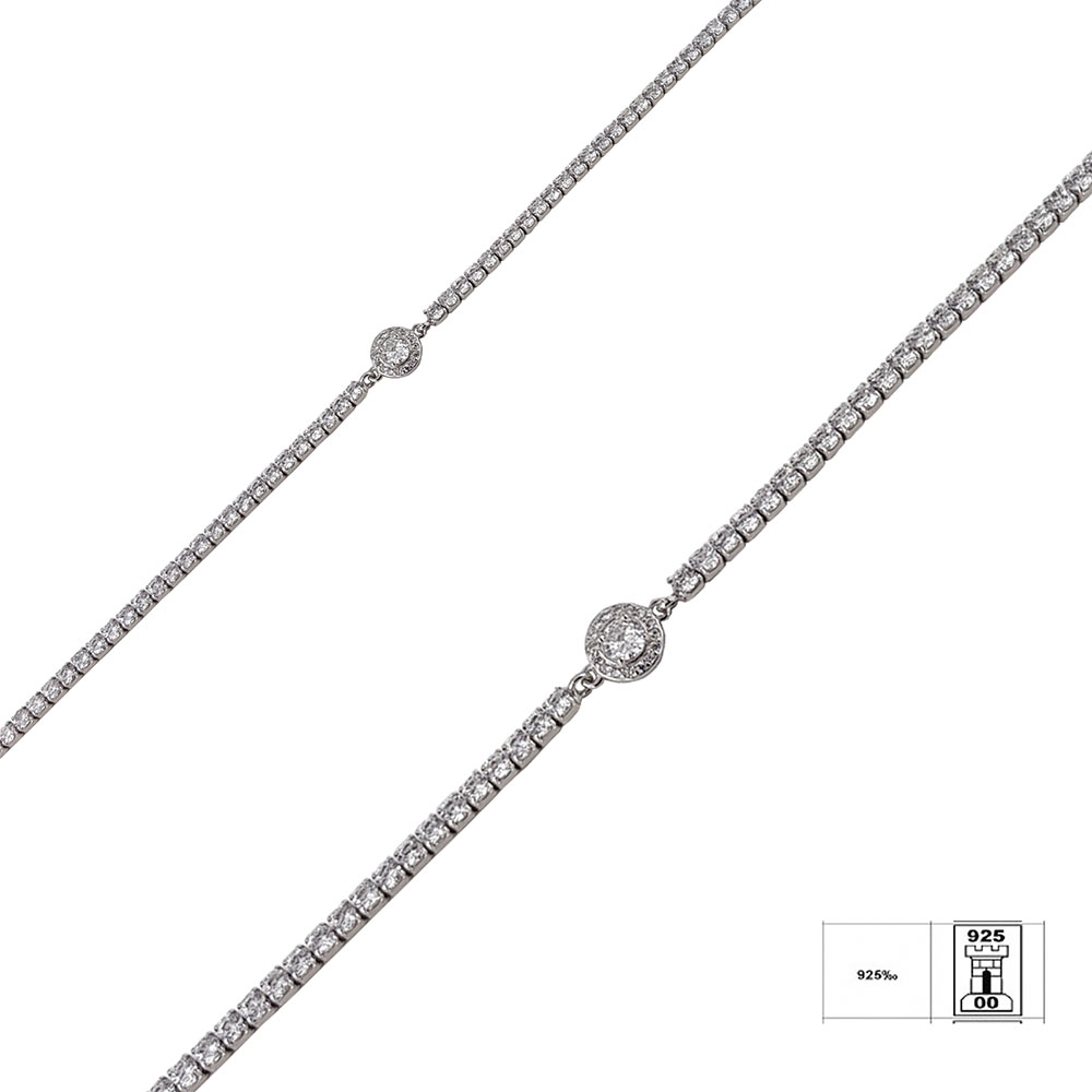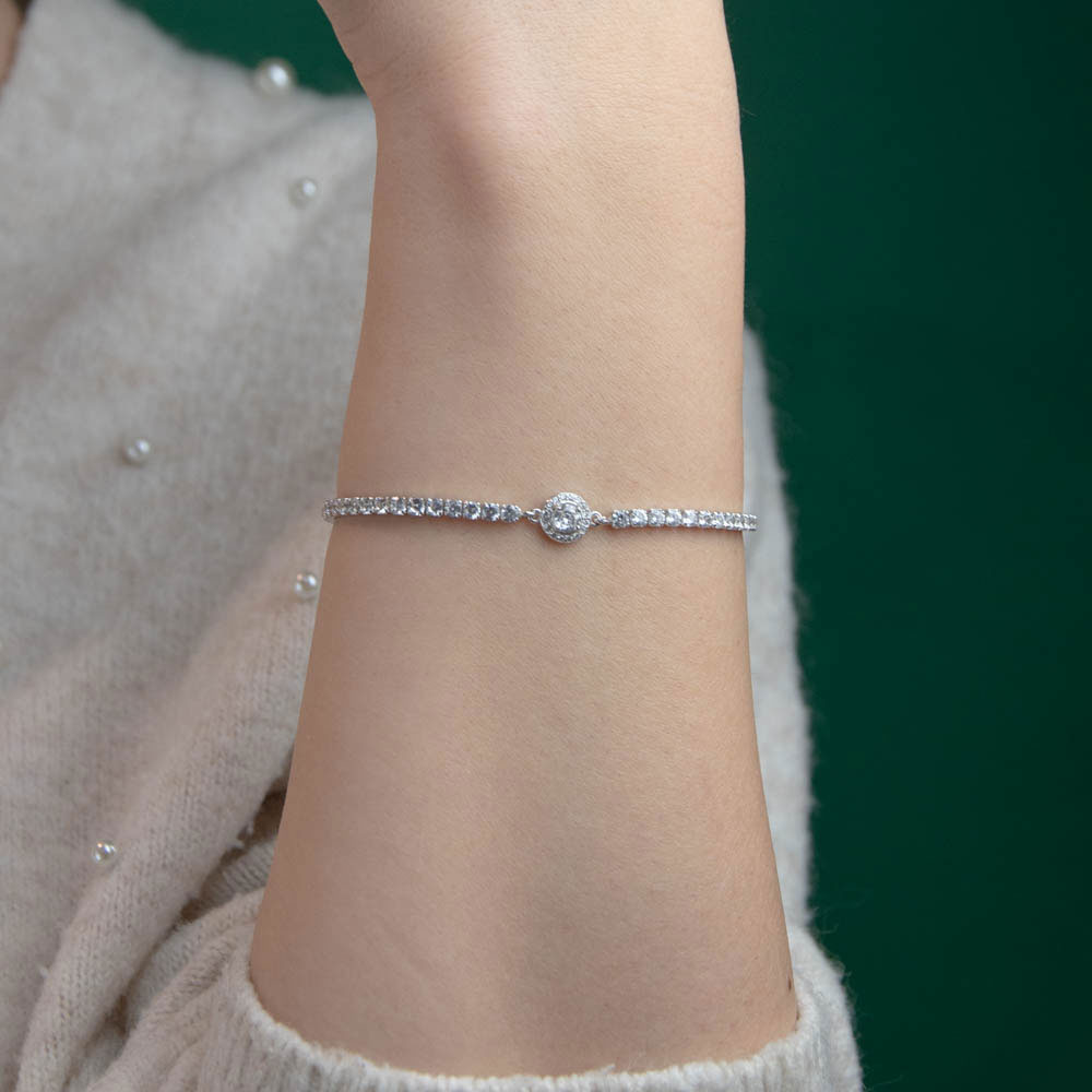 Adauga o nota de stralucire si eleganta garderobei tale cu Bratara Argint Tennis Thia. Realizata din argint 925, aceasta bratara versatila este incrustata cu zirconii ce captureaza si reflecta lumina, conferind o luminozitate aparte fiecarei tinute. Piatra centrala, de dimensiuni mai mari, atrage privirile si adauga un accent de rafinament.