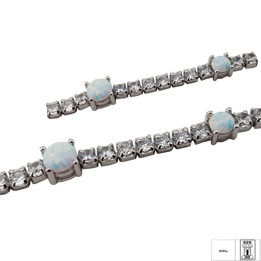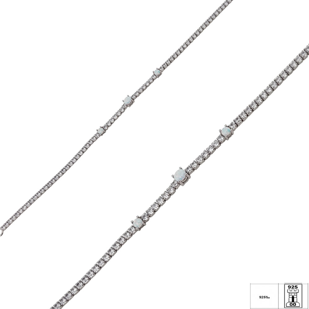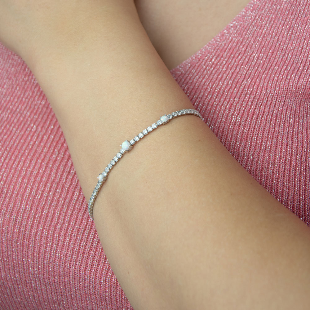 Designul bratarii include zirconii albe perfect aliniate, care reflecta lumina in mod spectaculos, completate de trei pietre de opal cu reflexii de albastru, alb si verde. Aceasta combinatie nu doar ca este vizual captivanta, dar adauga si o doza de culoare subtila, potrivita pentru diverse combinatii vestimentare.