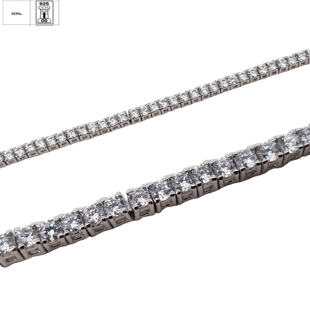 Designul bratarii urmeaza linia tennis clasica, avand un sir continuu de zirconii albe perfect aliniate, care reflecta lumina in mod spectaculos. Fiecare piatra este montata cu precizie, pentru a garanta un aspect unitar si stralucitor. Argintul 925 confera rezistenta si durabilitate, fiind totodata un material nobil, certificat si conform cu legislatia in vigoare privind metalele pretioase.