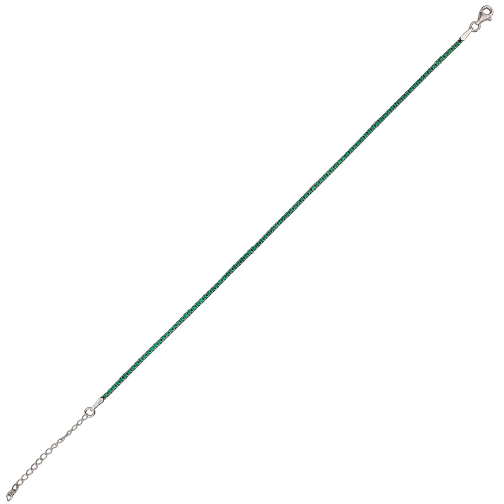 Designul tennis clasic este reinterpretat cu o linia continua de zirconii verzi, ce confera bratarii o nota vibranta si sofisticata. Cu o lungime de 22 cm si extensie pana la 27 cm, bratara se potriveste confortabil pe orice incheietura, fiind prevazuta cu un sistem de inchidere sigur si usor de utilizat.