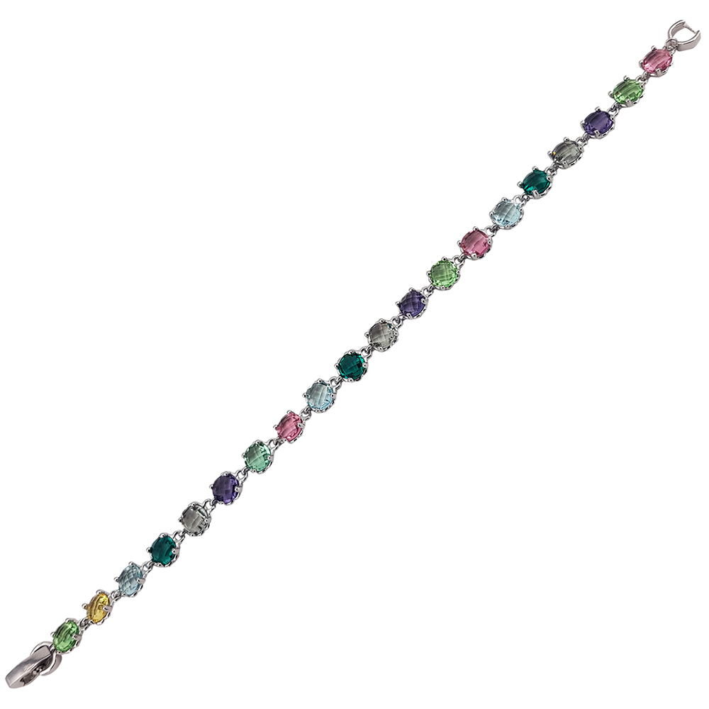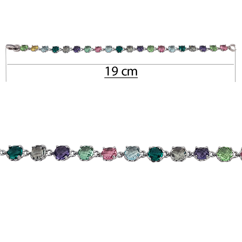 - Pietre: Zirconii multicolore, fiecare piatra fiind finisata meticulos pentru a reflecta lumina si a adauga o nota de culoare vibranta.