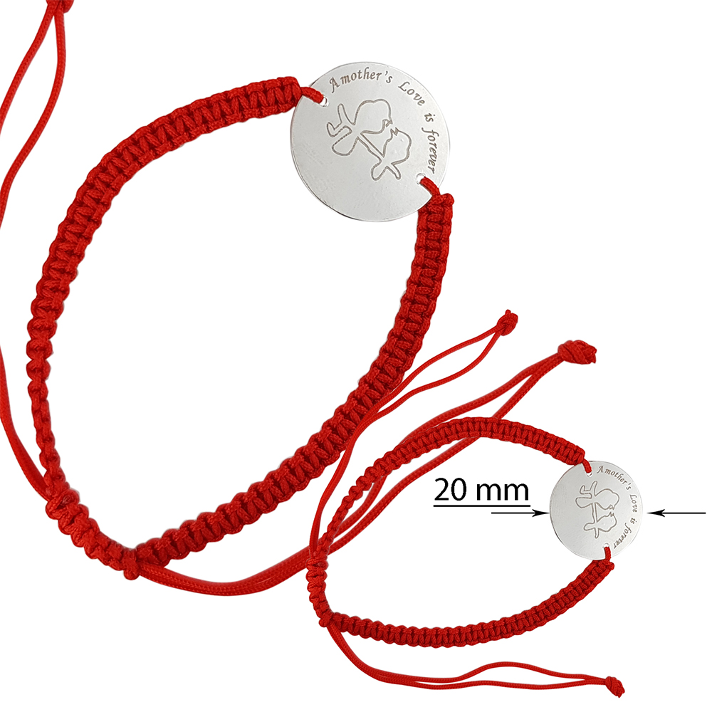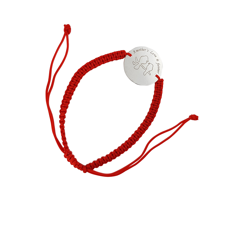 Bratara snur rosu, marime reglabila 16-24 cm, cu un banut gravat cu mesaj A mother's love is forever".
