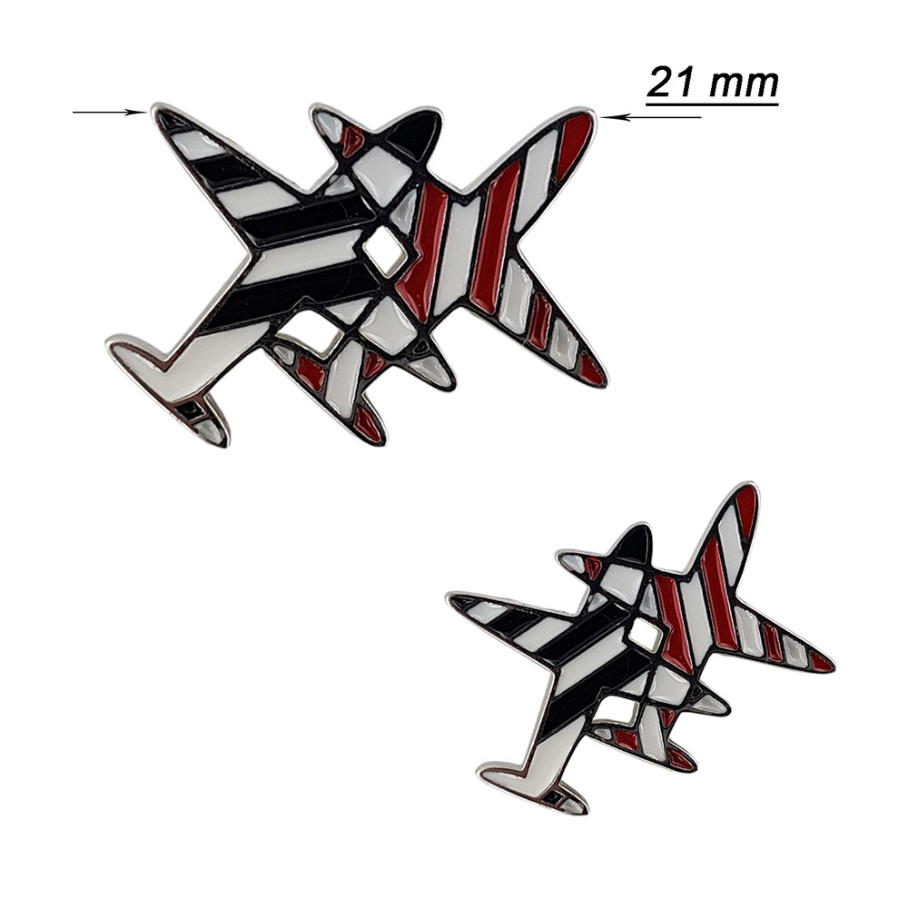 Brosa are forma a doua avioane distincte, decorate cu email multicolor in nuante de alb, negru si rosu, ce confera produsului o nota de veselie si originalitate. Este dotata cu inchidere cu siguranta, oferindu-ti confort si siguranta in purtare. Datorita dimensiunilor practice de 25 mm lungime si latime si a greutatii reduse de doar 2.61 grame, poate fi purtata cu usurinta pe orice tinuta.