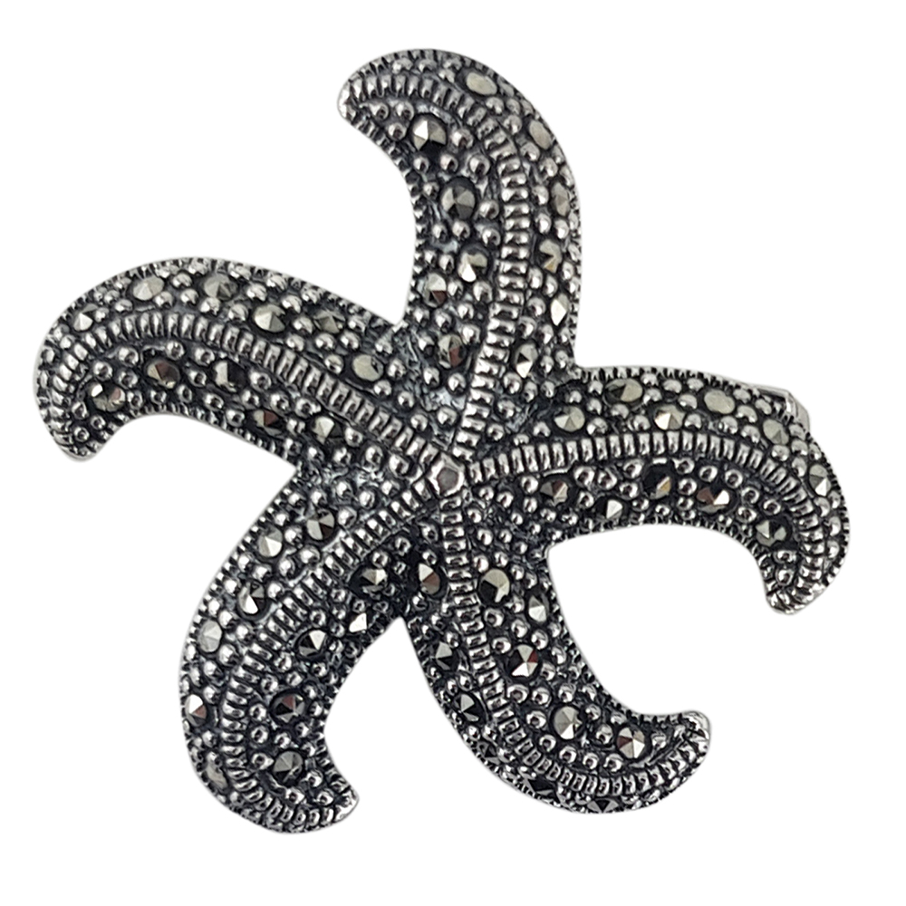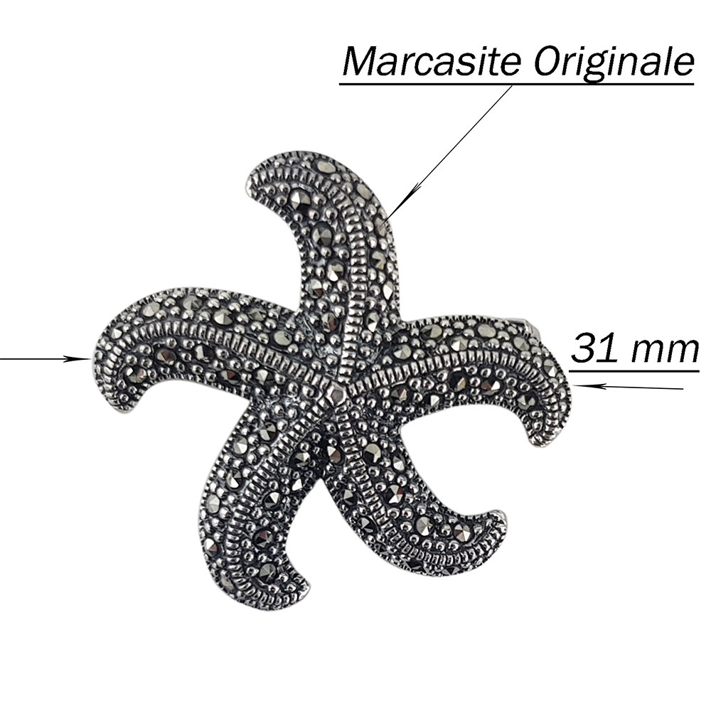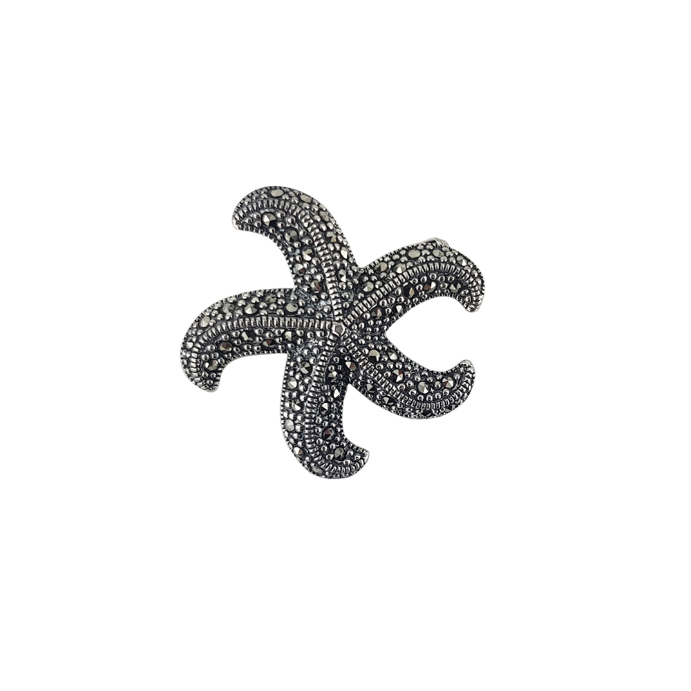 Descopera eleganta si rafinamentul unei bijuterii unice: brosa din argint 925 stea de mare Kasia, decorata cu marcasite autentice. Aceasta bijuterie speciala se distinge prin detaliile sale fine, cu finisaje gravate meticulos si design-ul original in forma de stea de mare.