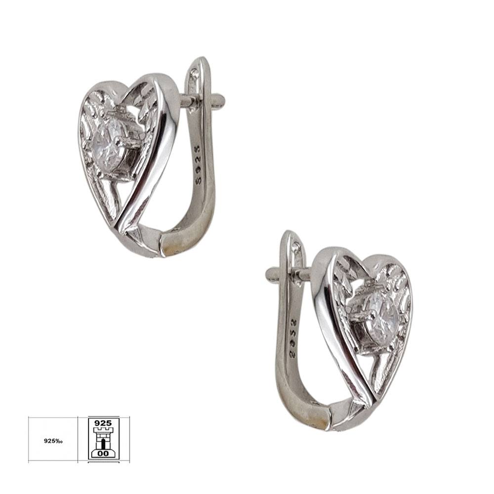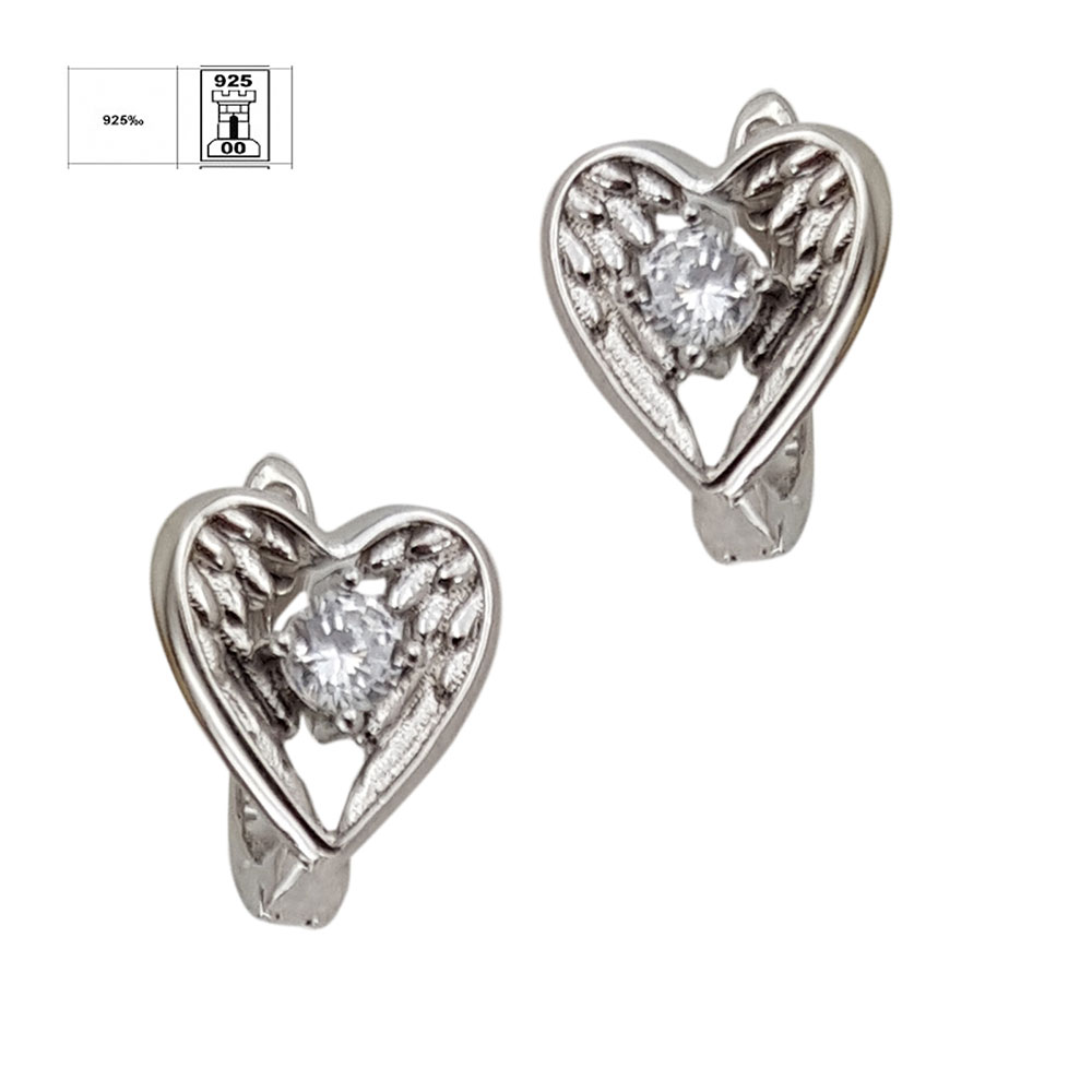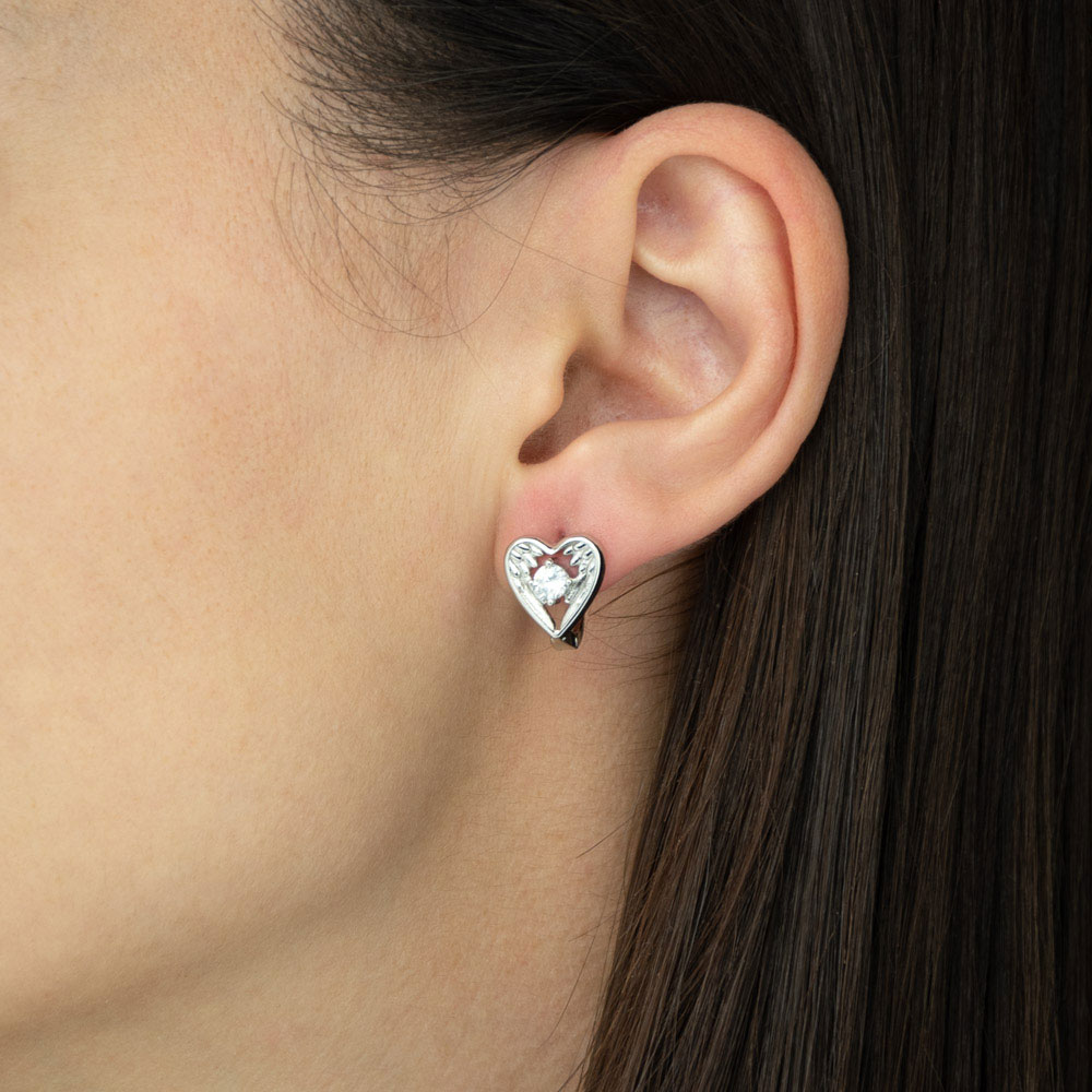 Cercei din argint 925, model inima cu aripi si zirconiu pe interior. Inchizatoare englezeasca.
