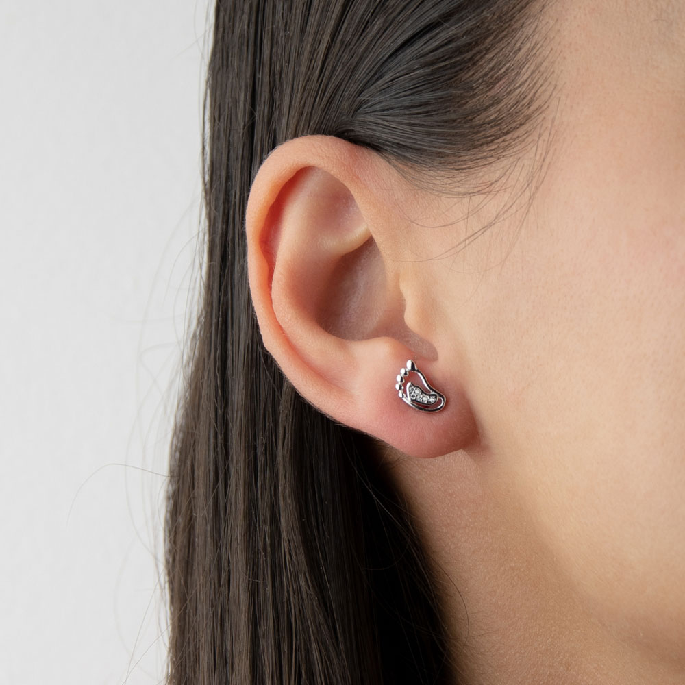 Cerceii din argint 925 cu model in forma de picioruse de bebelus sunt o bijuterie adorabila si plina de simbolism, care poate reprezenta o amintire speciala sau un cadou minunat pentru proaspetii parinti.