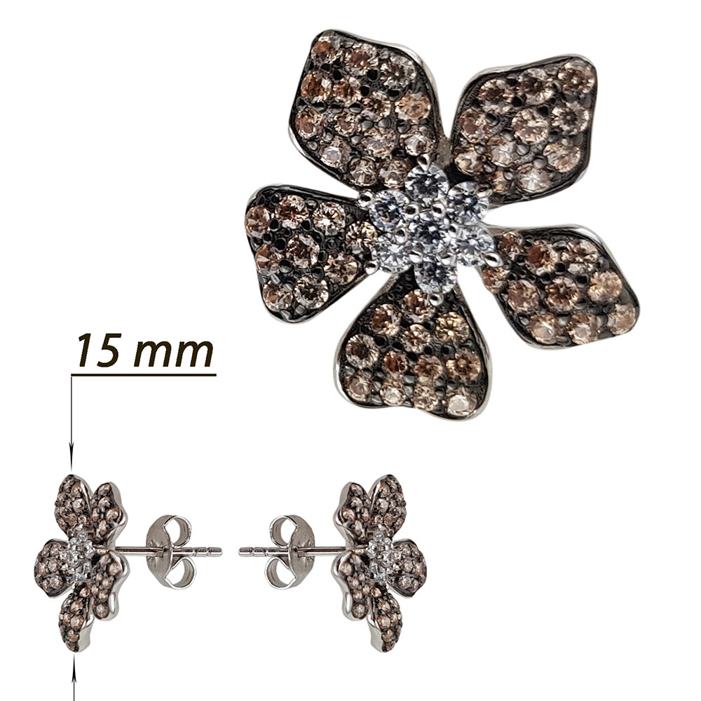 Explorati frumusetea si eleganta cu Cercei din Argint 925 Brown Crystals, disponibili exclusiv la Rankine. Aceasta pereche de cercei, avand forma unei flori delicate, este decorata meticulos cu zirconii albe si maronii, oferind un contrast splendid care va atrage priviri admirative. Cu o lungime si latime de 15 mm fiecare, aceste bijuterii sunt perfecte pentru a completa orice tinuta, de la cea casual la cele mai sofisticate.