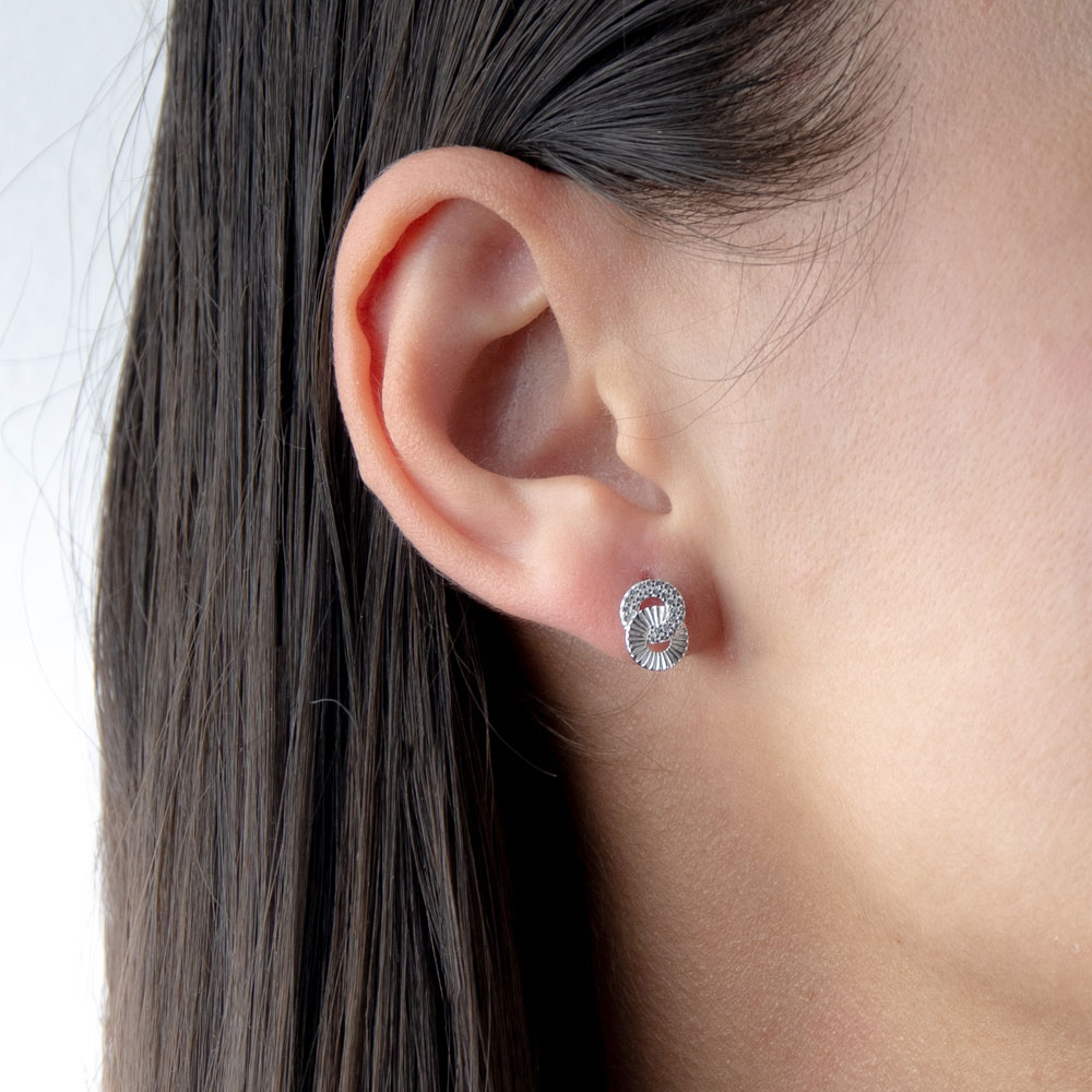 Cerceii au un design sub forma de cercuri, unul avand incrustate mici zirconii albe stralucitoare, iar celalalt prezinta striatii delicate din argint, adaugand eleganta si stralucire oricarei tinute.