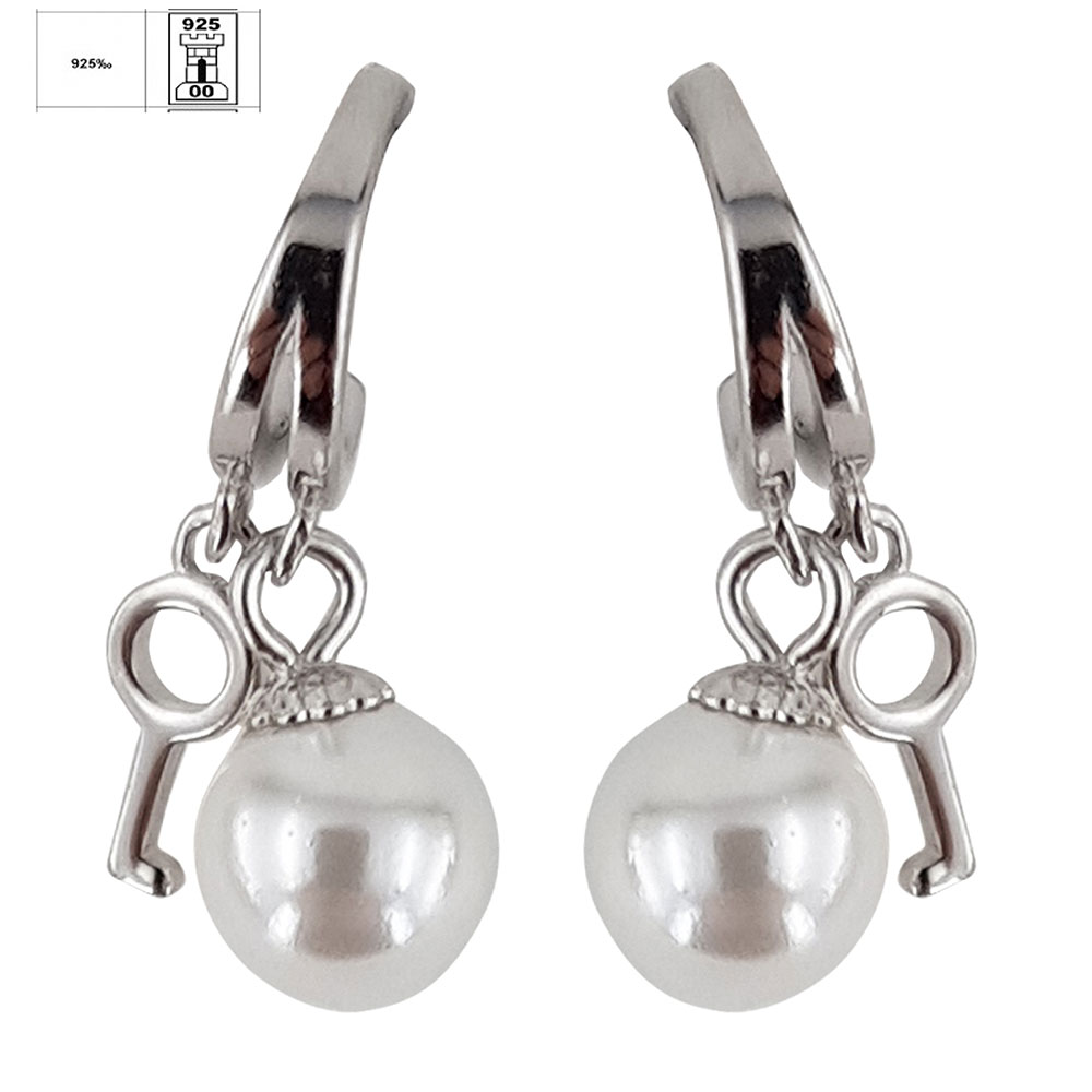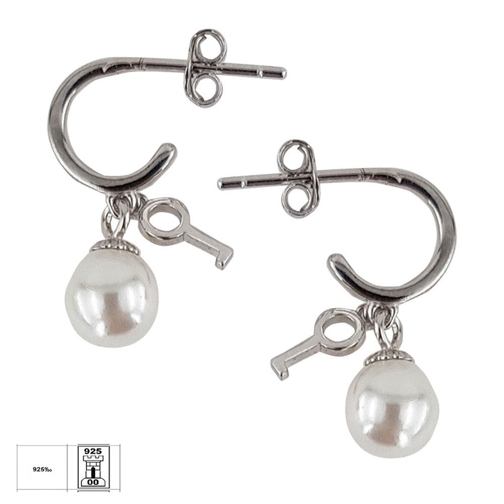 Explorati universul bijuteriilor elegante cu acesti cercei din argint 925, perfecti pentru a adauga un strop de romantism si rafinament garderobei dumneavoastra. Fiecare cercel dispune de un design inovator cu perle de cultura stralucitoare, complementate de simbolurile cheie si inima, reflectand pasiune si fidelitate.