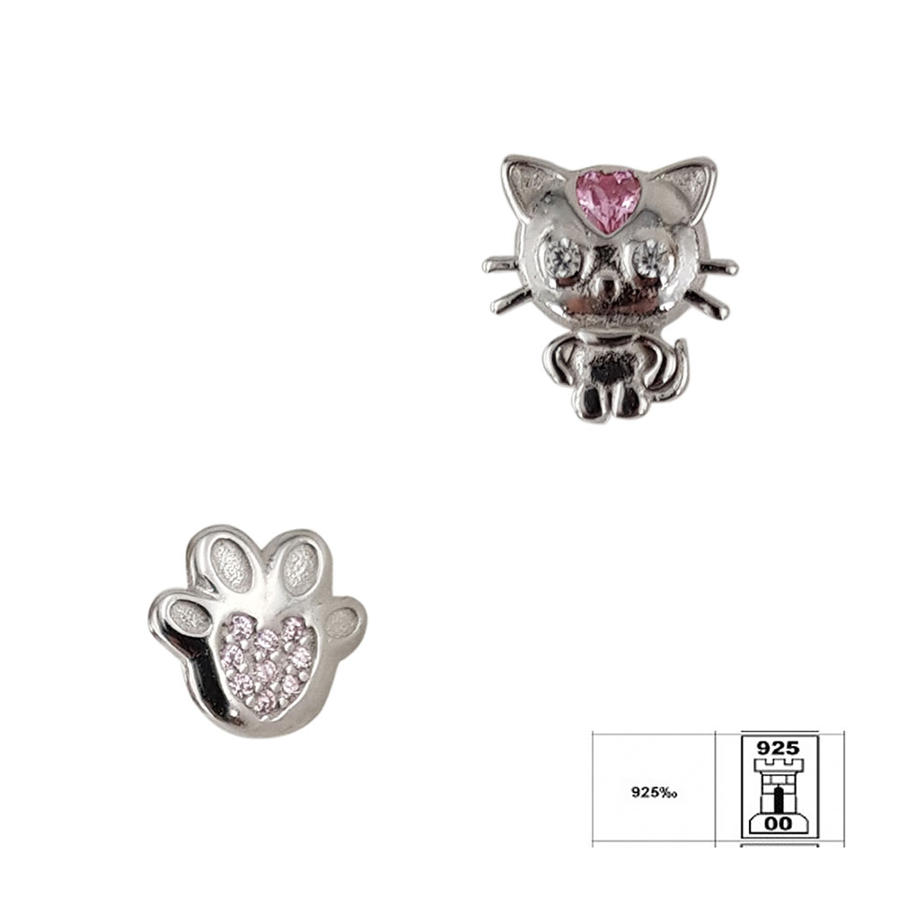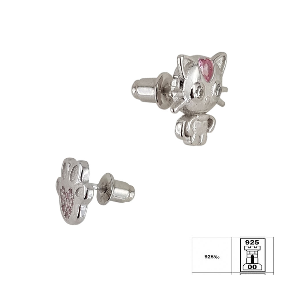 Modelul asimetric, cu o pisica dragalasa si o labuta, face din aceasta pereche de cercei o alegere indragita de toti copiii care adora animalele. Incrustati cu zirconii roz si albe, cerceii Ember stralucesc delicat, atragand atentia si completand orice outfit cu un plus de adorabilitate.