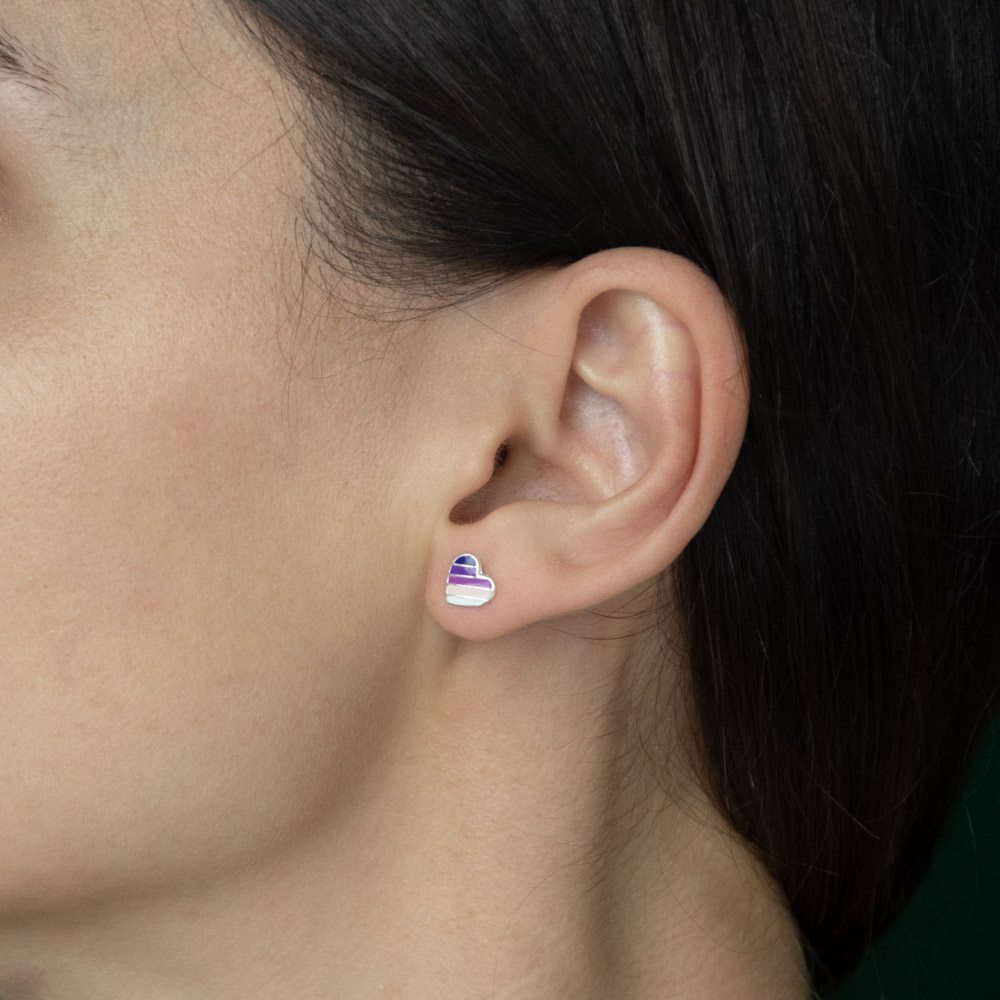 Cercei din argint 925, model inima, decorati cu email multicolor. Cerceii se inchid cu surub.