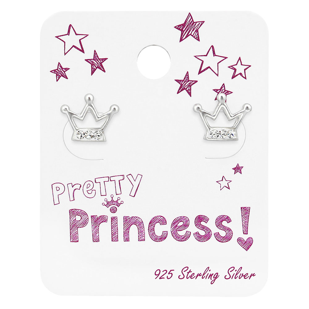 Cercei din argint 925 pentru copii model coronita cu zirconii albe. Sistem de inchidere surub.