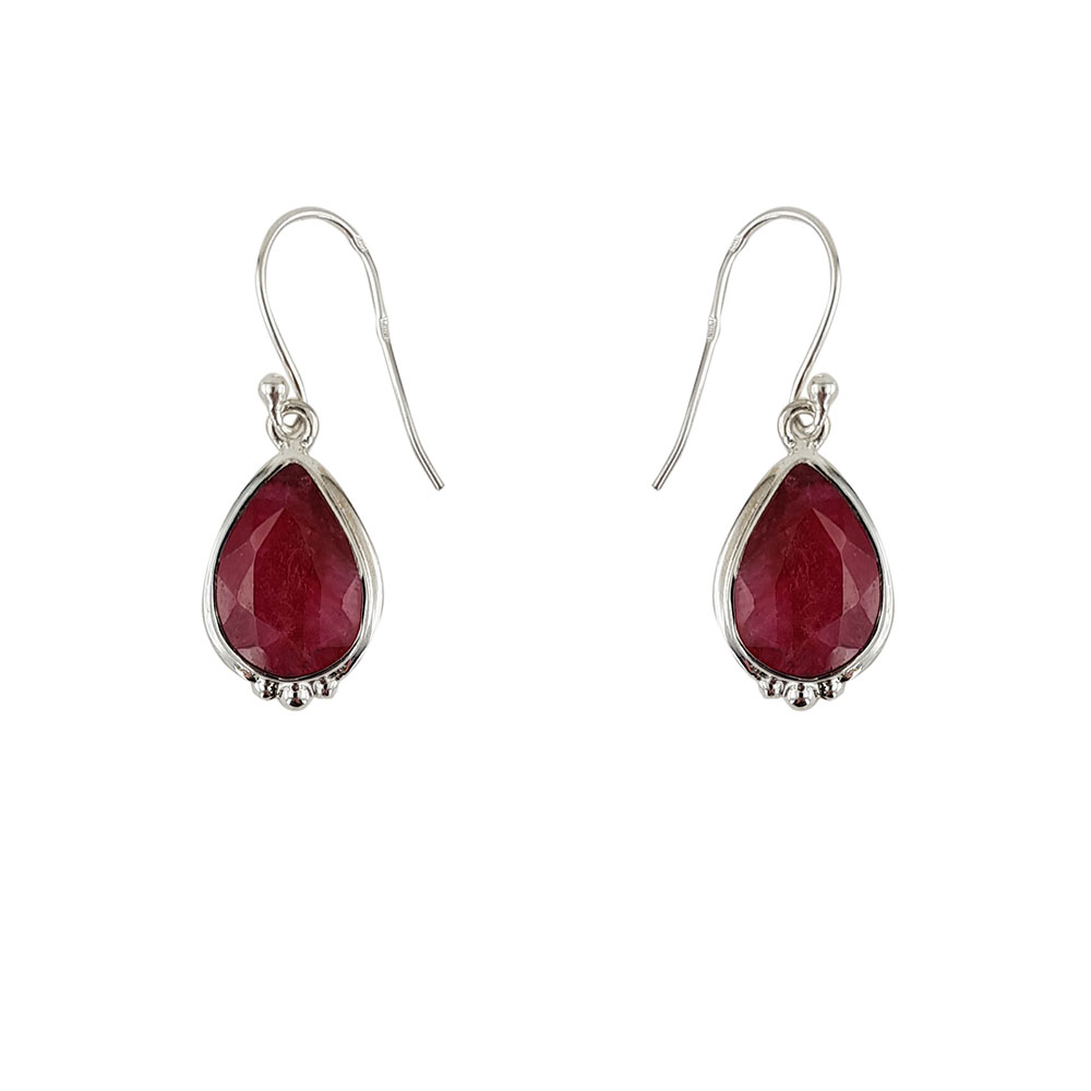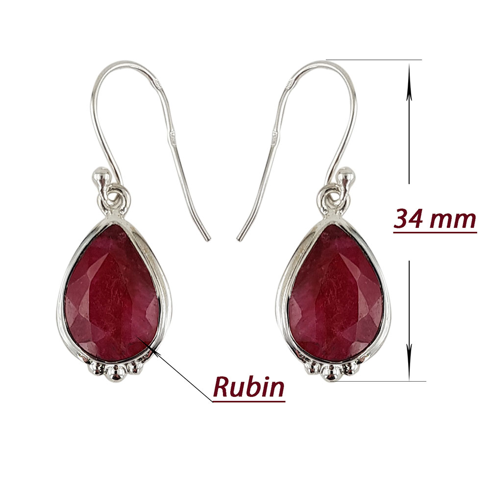 Cercei din argint 925, decorati cu rubine. Cerceii au tortite agatatoare.