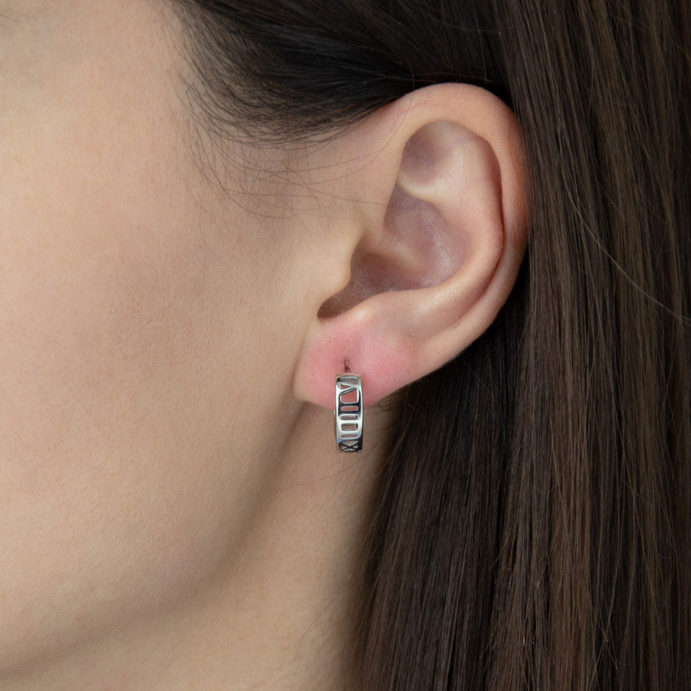 Cercei argint Thia model indraznet decorati cu cifre romane se pot purta cu inelul SET18614I-52-8.