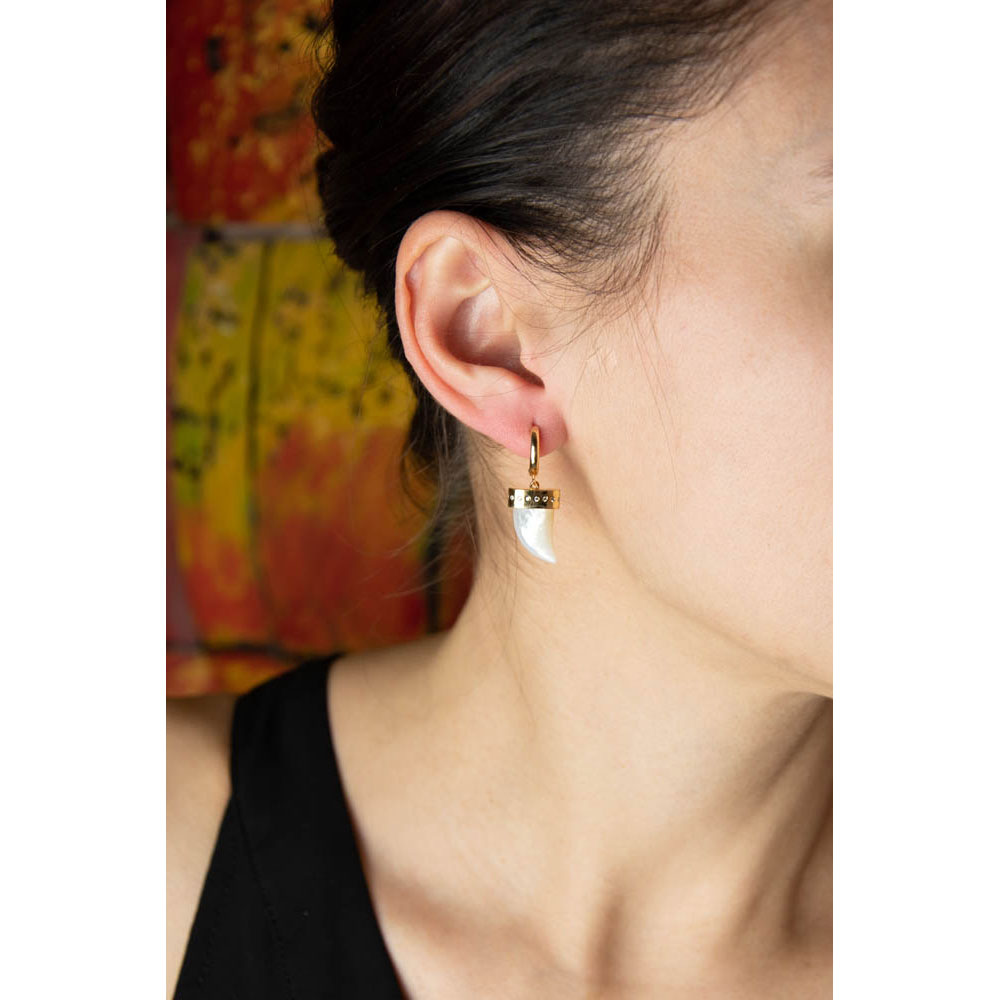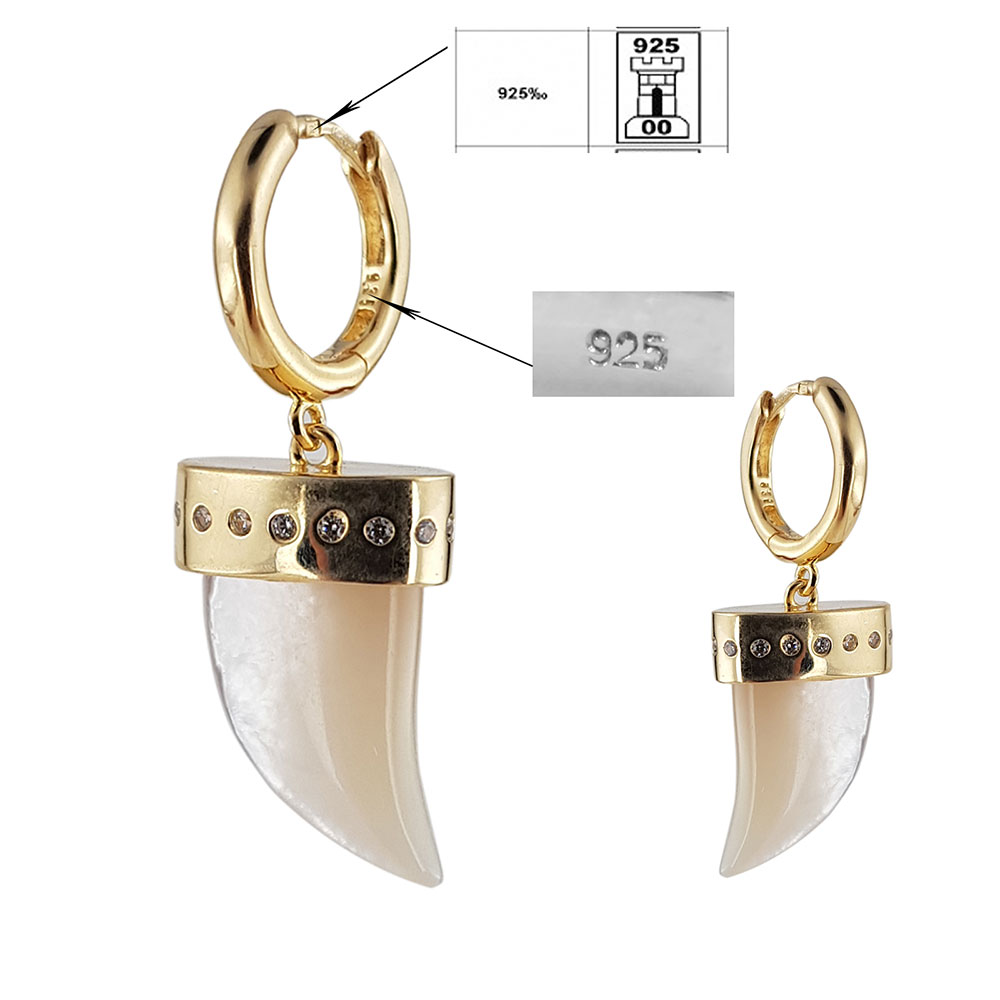 Explorati colectia noastra exclusiva de cercei din argint si descoperiti eleganta sidefului Ivory Horn. Acesti cercei unici, realizati din argint 925, imbina perfect frumusetea naturala a sidefului cu stralucirea detaliilor aurii, oferind o piesa de bijuterie sofisticata si versatila.
