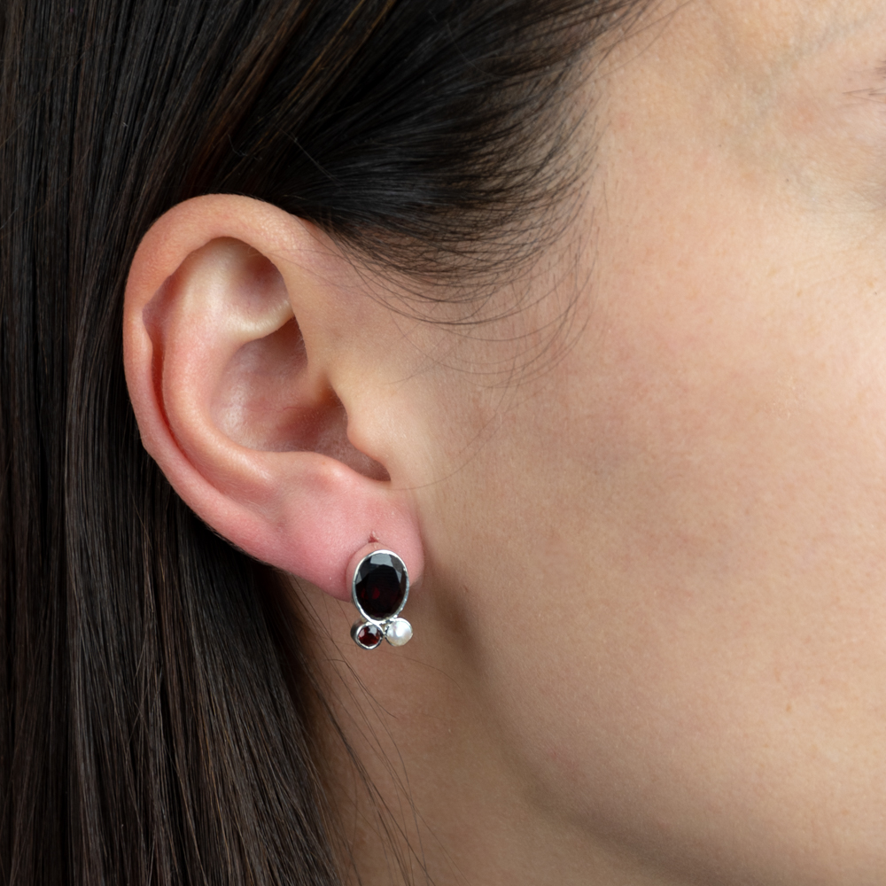 Explorati frumusetea si rafinamentul cu cerceii din argint 925, decorati cu sidef luminos si granate bogate in culoare. Acesti cercei sunt alegerea ideala pentru a adauga o nota de eleganta oricarei tinute.