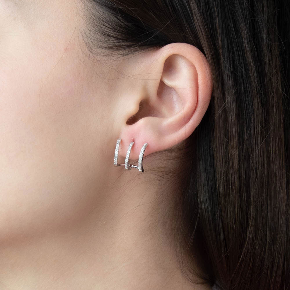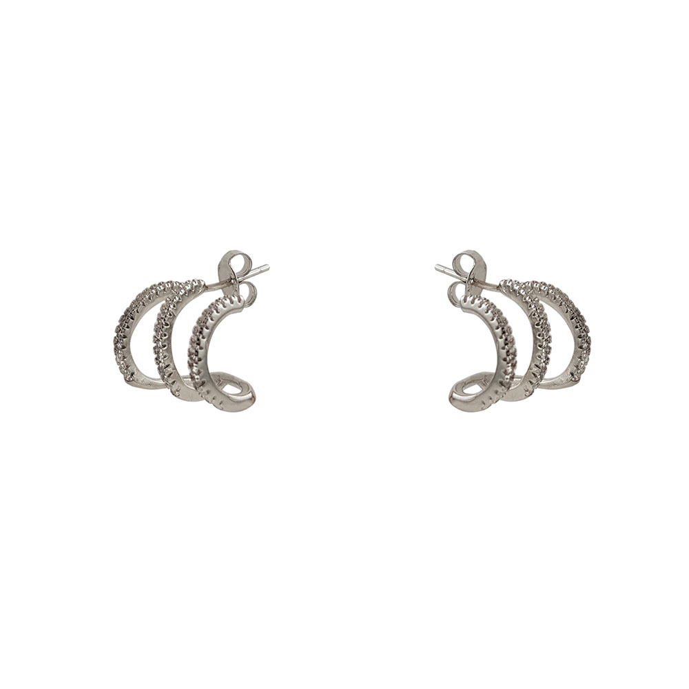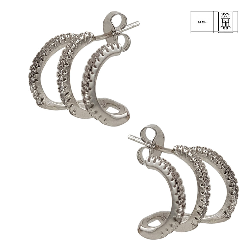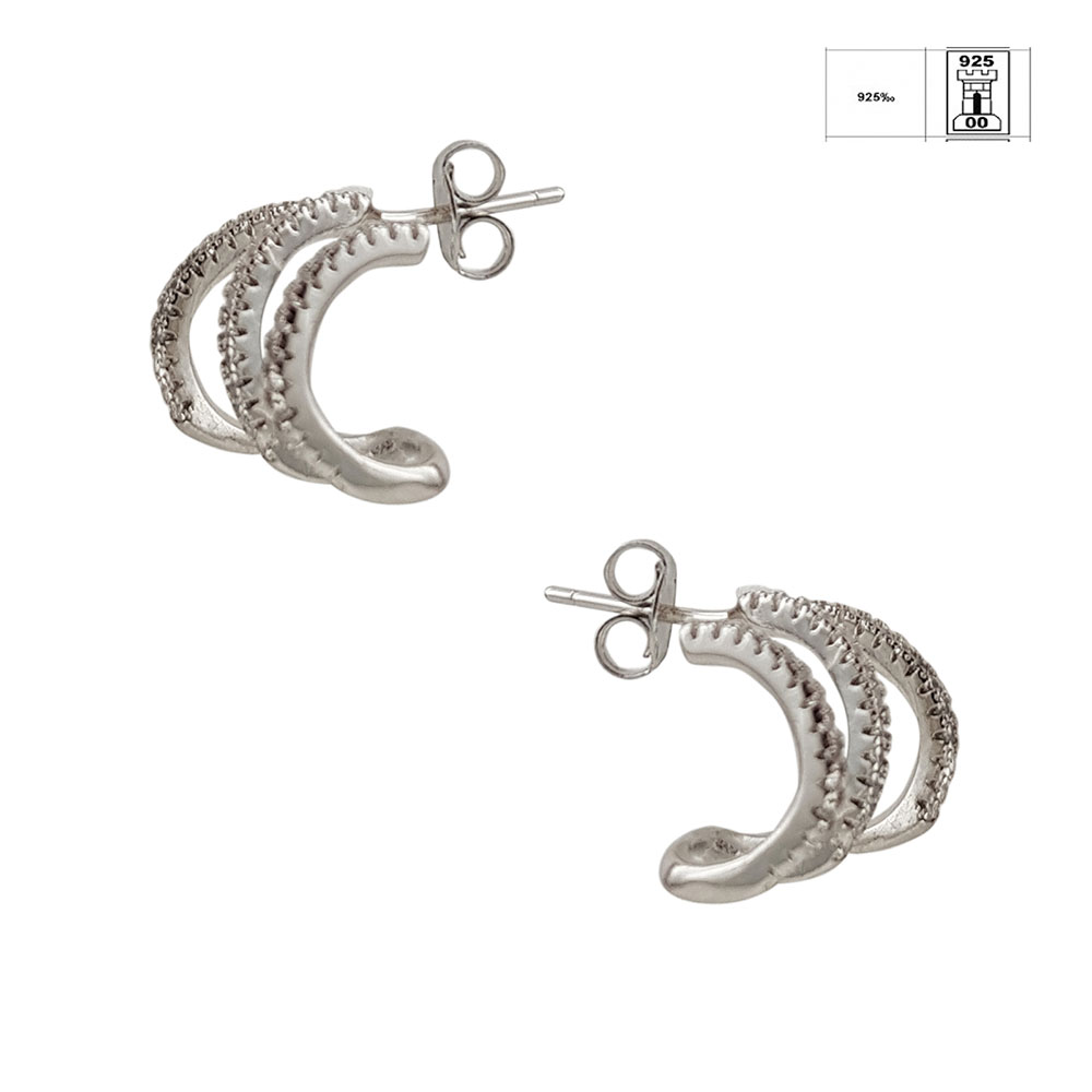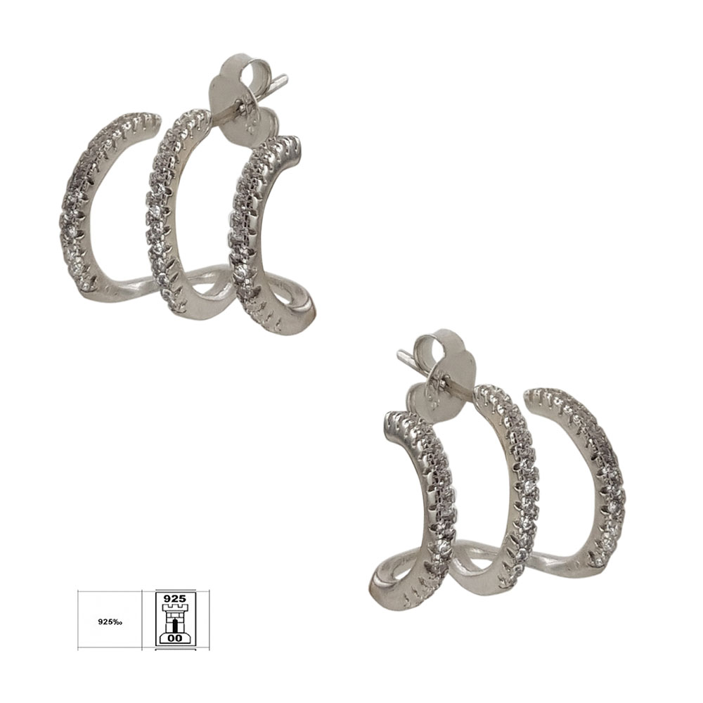 Acestia au trei bare curbate din argint cu micro zirconii albe, unite intre ele, ceea ce ofera simetrie si stralucire modelului.Sistemul de inchidere este de tip surub.