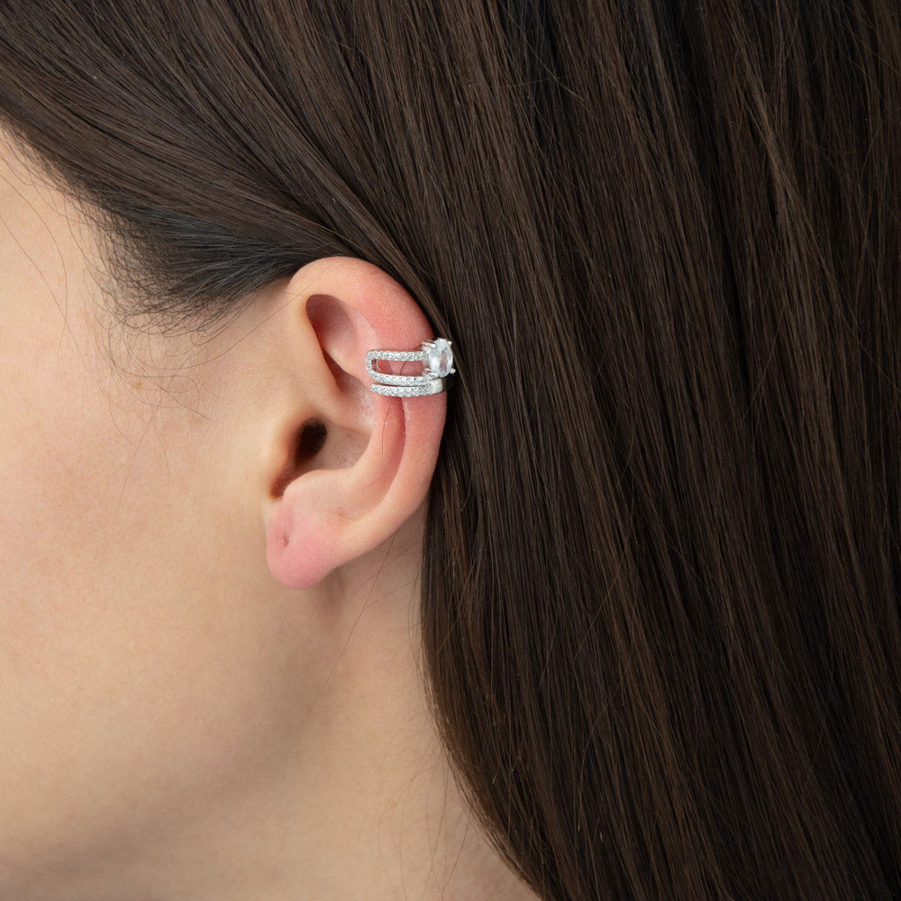 Cercelul Thia din argint 925 se prinde de pavilionul urechii, fara sa fie nevoie de gaura.