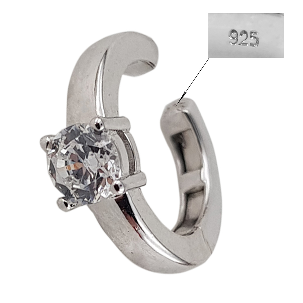 Cercel din argint 925 ear cuff, decorat cu zirconiu alb. Cercelul se prinde de pavilionul urechii, fara sa fie nevoie de gaura. Se poate purta pe oricare ureche, singur sau impreuna cu alti cercei ear cuff.