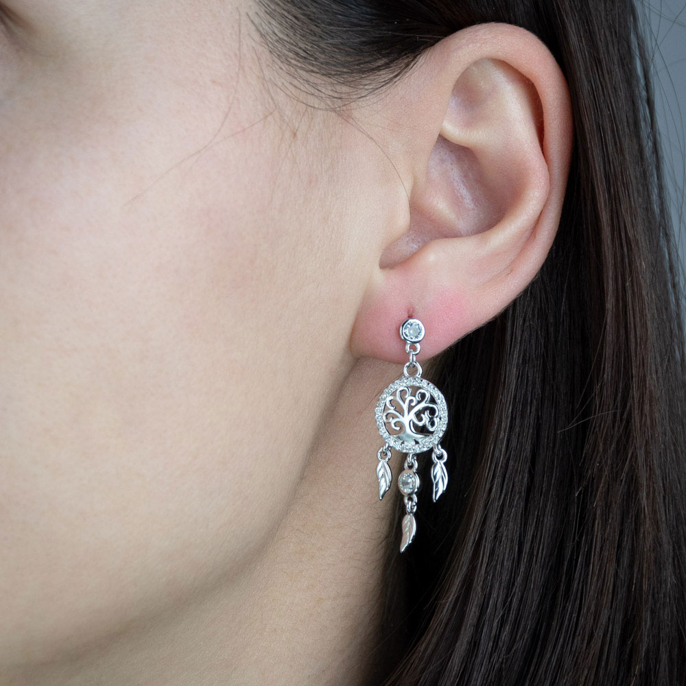 Explorati universul bijuteriilor deosebite cu Cerceii Dreamer din Argint 925, un accesoriu must-have pentru orice colectie. Fabricati cu meticulozitate, acesti cercei imbina designul traditional al dream catcher cu elemente moderne, avand in centru simbolul pomului vietii, finisat cu zirconii albe stralucitoare. Aceste pietre adauga o nota de eleganta si rafinament, transformand fiecare pereche intr-o opera de arta minunata si accesibila.