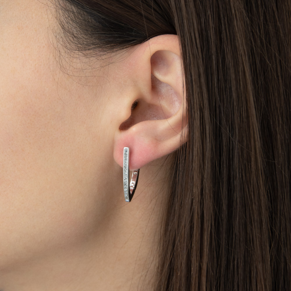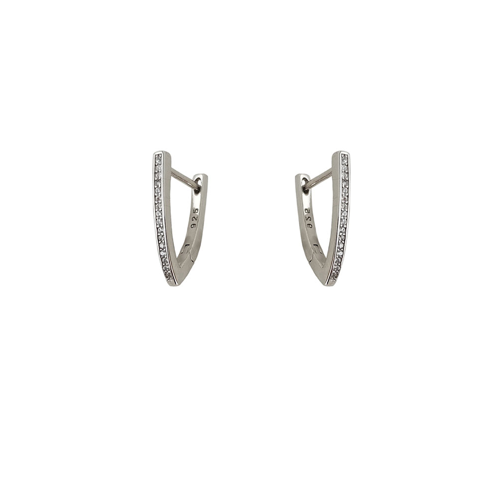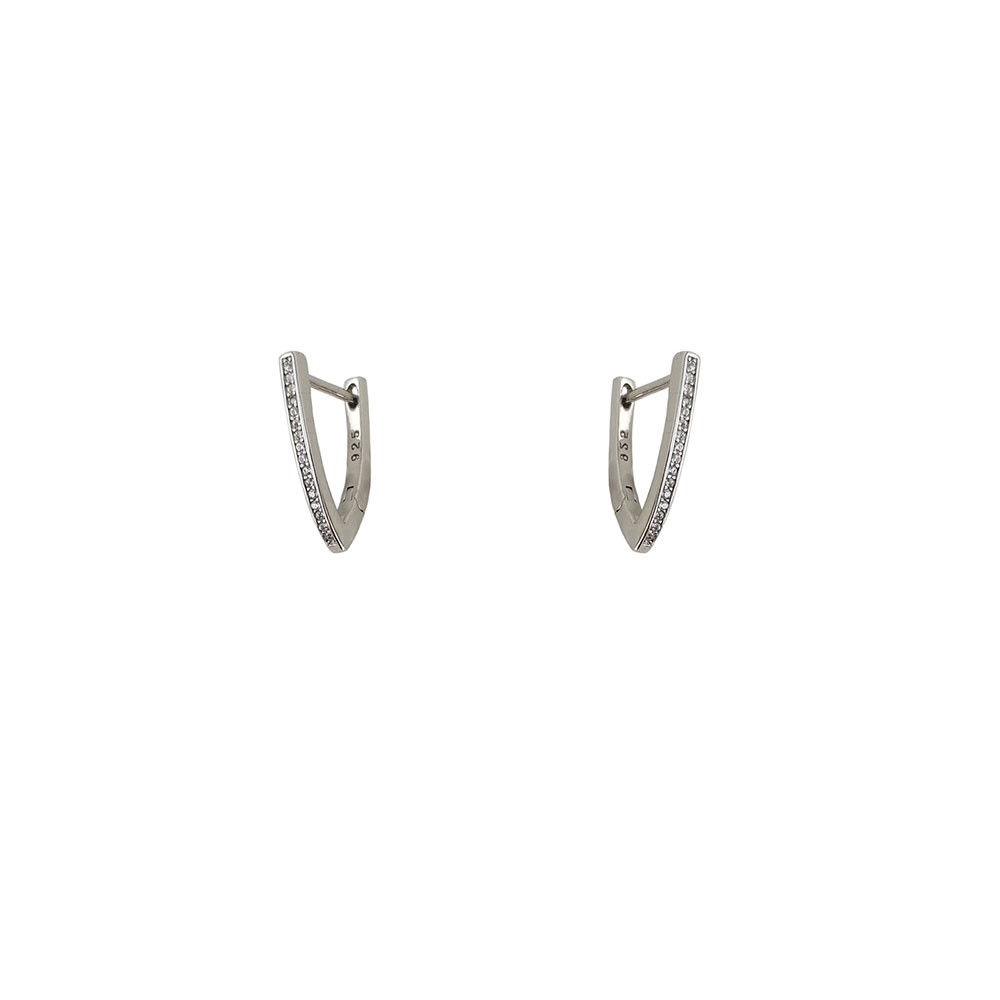 Cercei Thia cu un vibe modern in forma de V decorati cu zirconii, model excelent atat pentru tinute de zi cat si pentru o tinuta office.