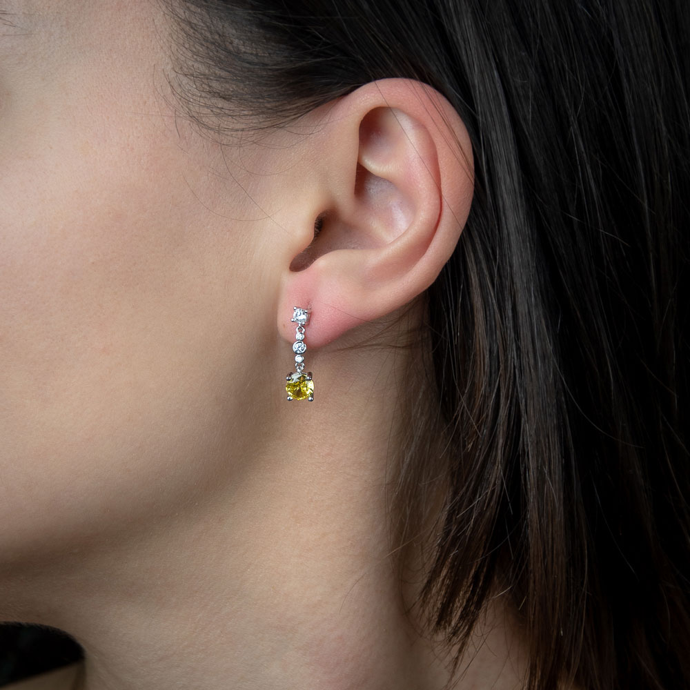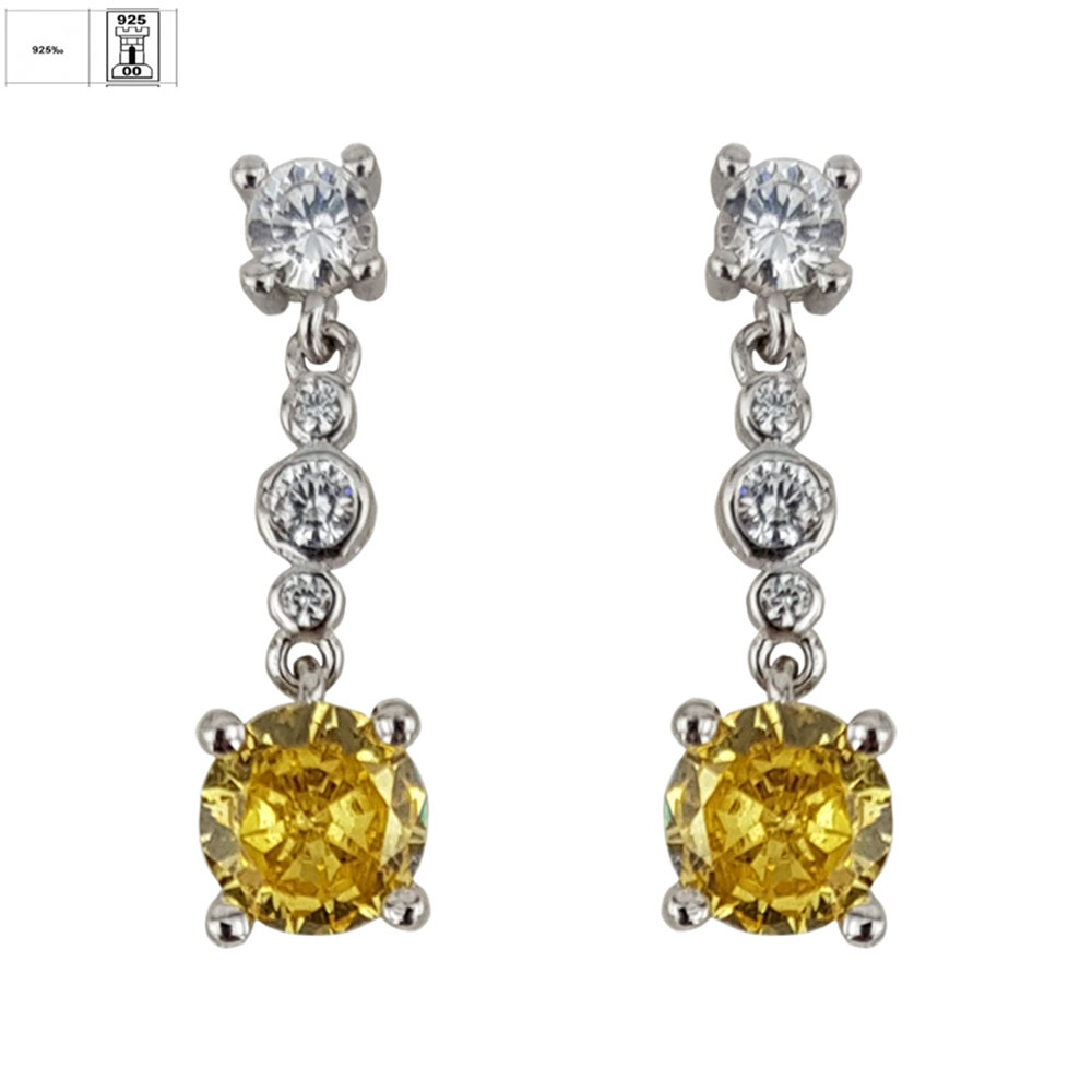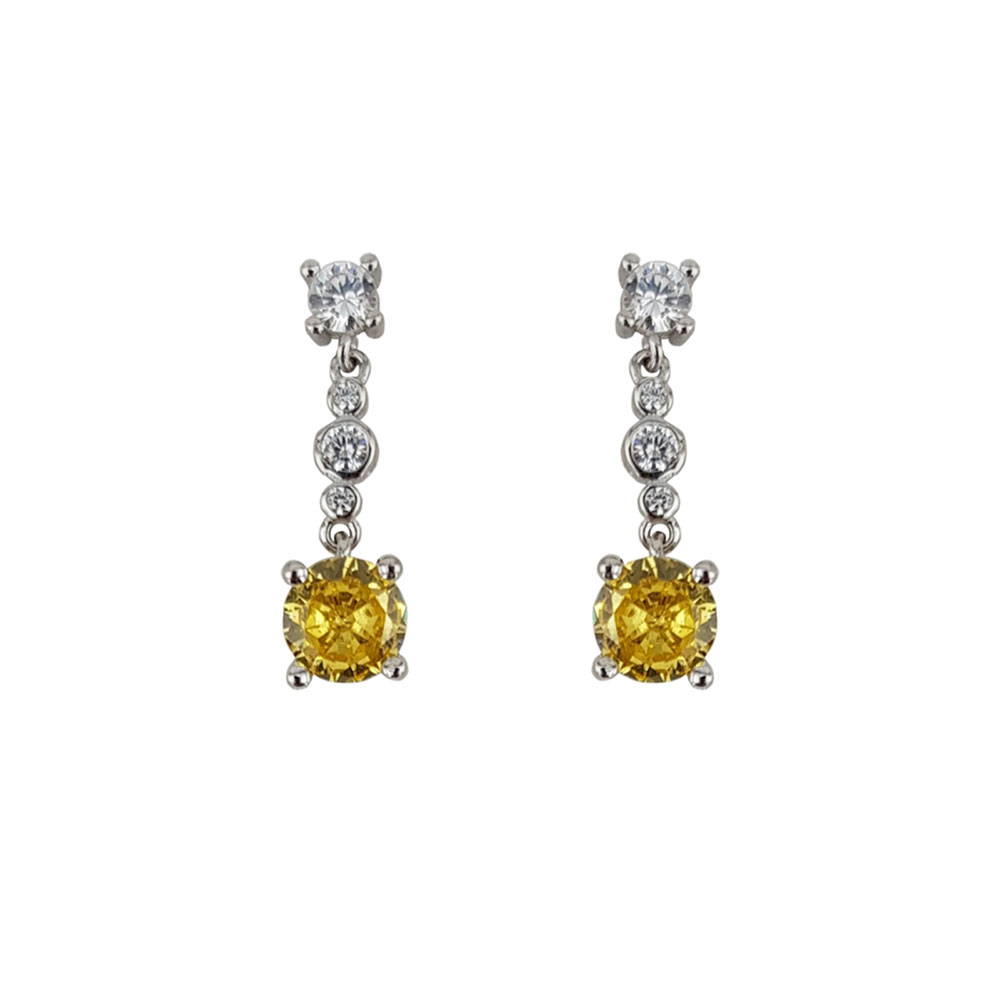 Elementul distinctiv al acestor cercei consta intr-un zirconiu in nuan?te de galben, plasat la baza cercelului adaugand o nota de culoare si un contrast interesant acestora.