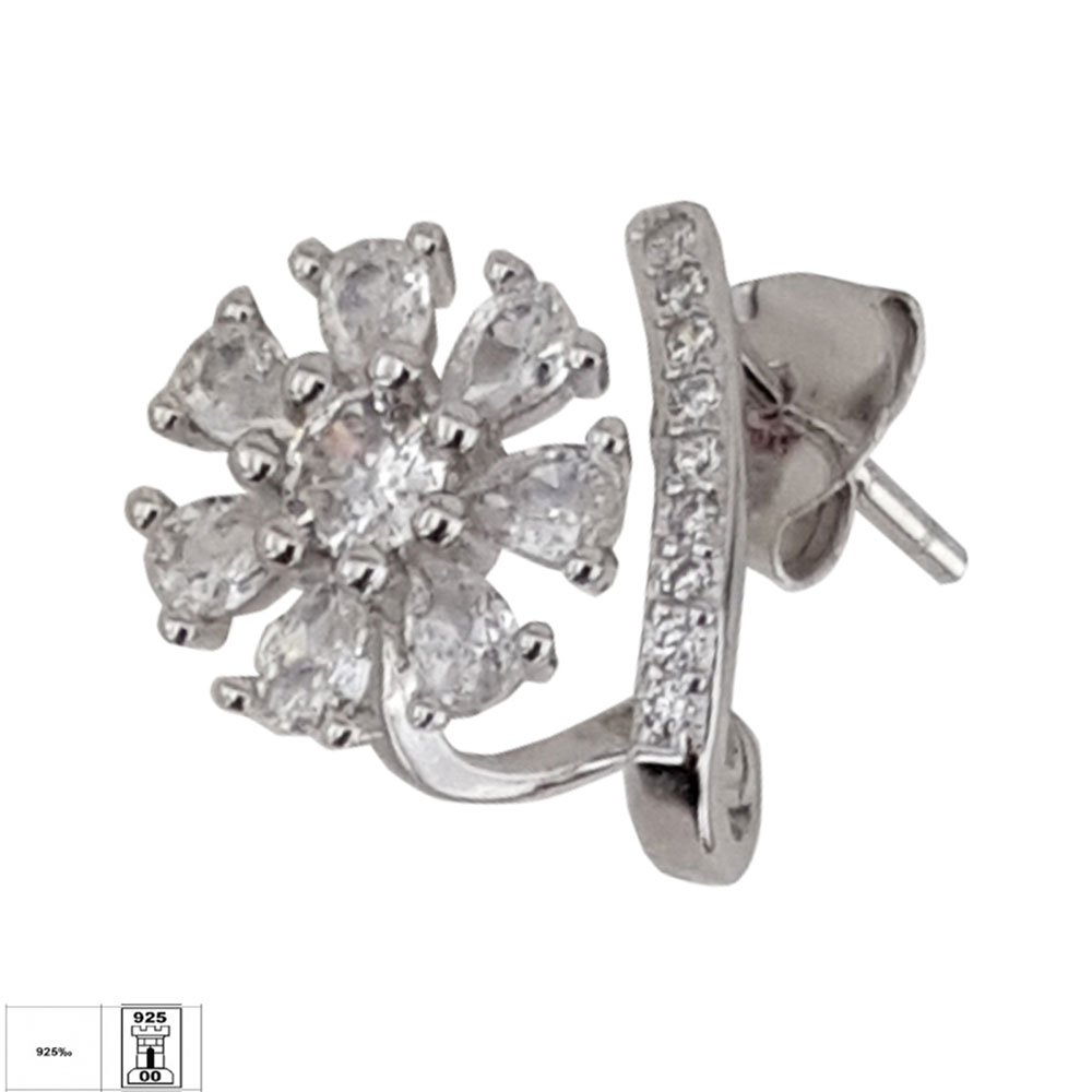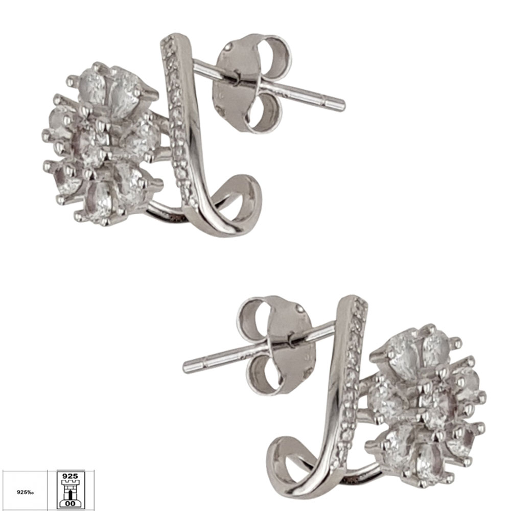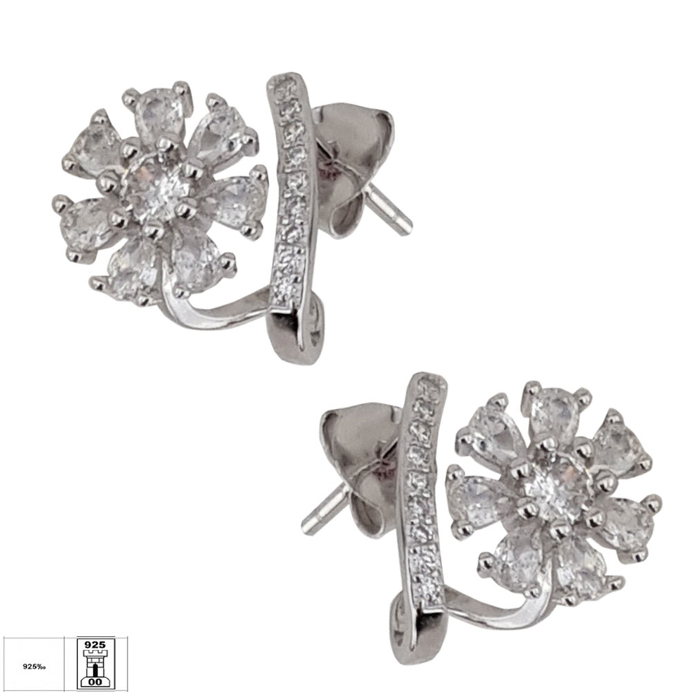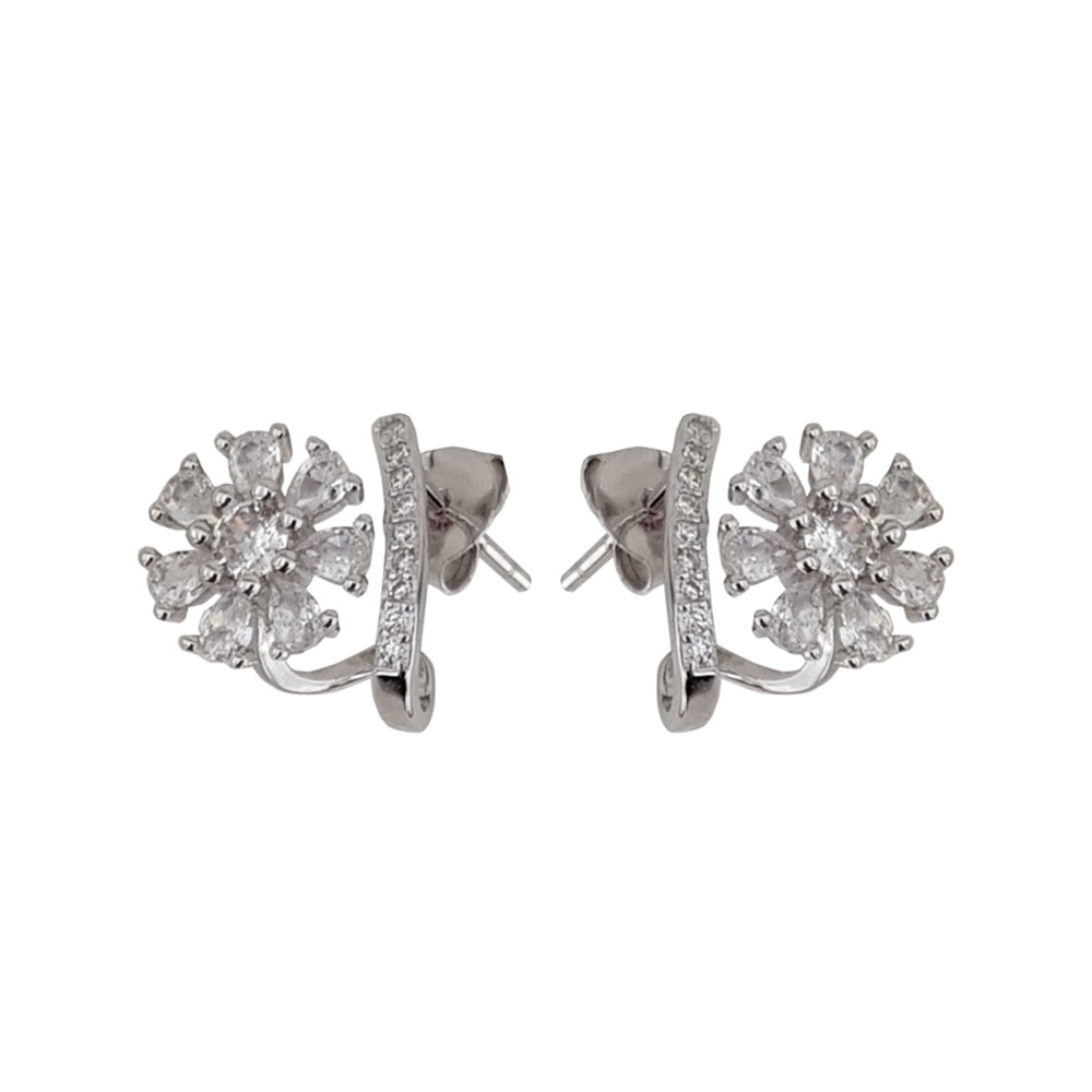 Cerceii Zia din argint 925 reprezinta alegerea perfecta pentru femeile care apreciaza bijuteriile cu design delicat si finisaje impecabile. Acest model se remarca prin forma florala eleganta, ale carei petale sunt incrustate cu zirconii albe taiate cu precizie, oferind o stralucire deosebita si un efect vizual rafinat.