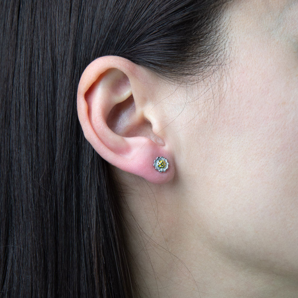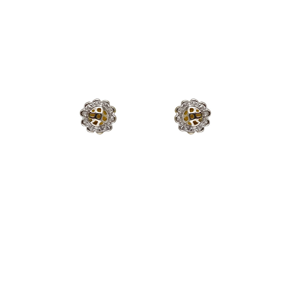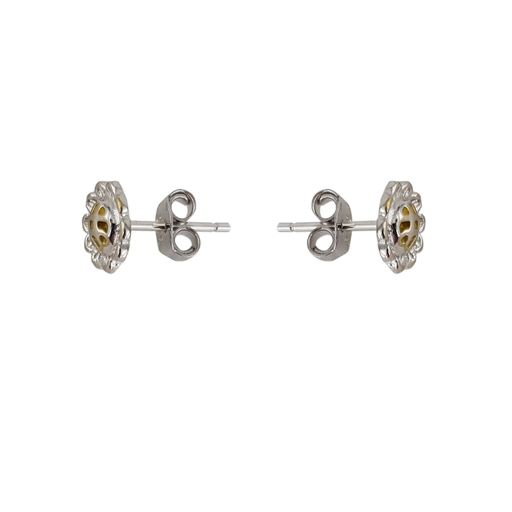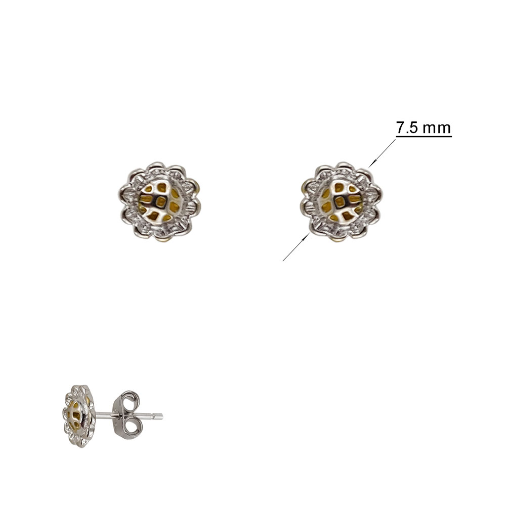 Cercei din argint 925, model floare in doua nuante, argintiu si auriu. Sistem de inchidere surub.